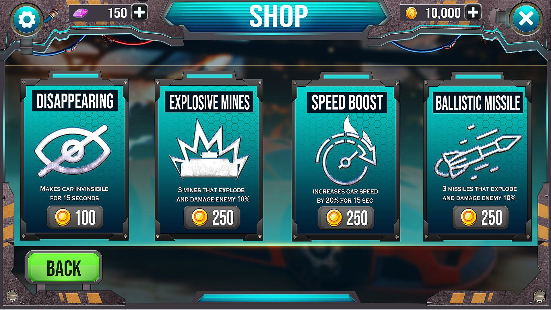 Earn points after every win and upgrade your vehicle! Use your points to get superior