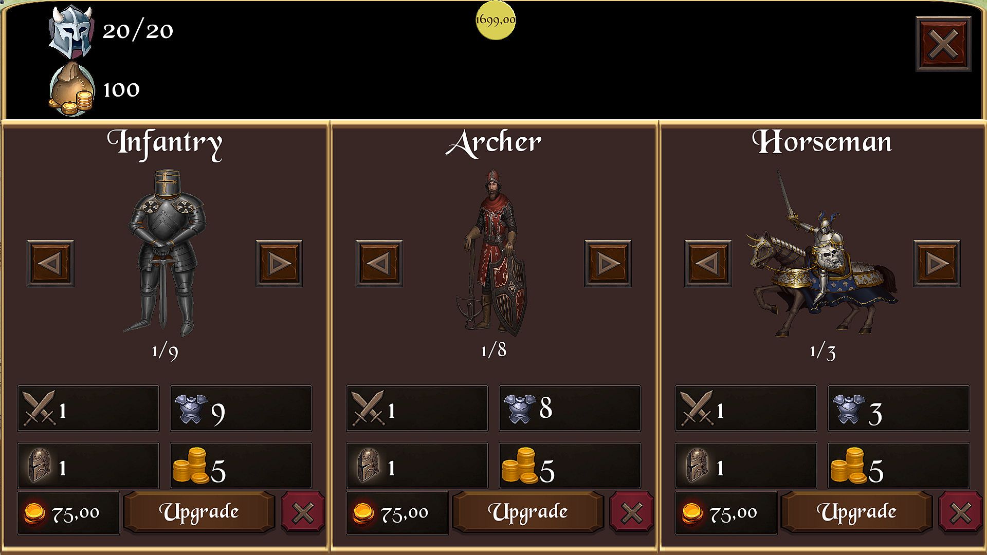 Quadia is a lot of things, but a safe place is not one of them. You should hire soldiers to protect your shiny golds and precious goods. However, pay attention to your weekly balance, since you should give soldiers some salary every week. Also, you can upgrade your soldiers when they earn some experience on the battlefield.