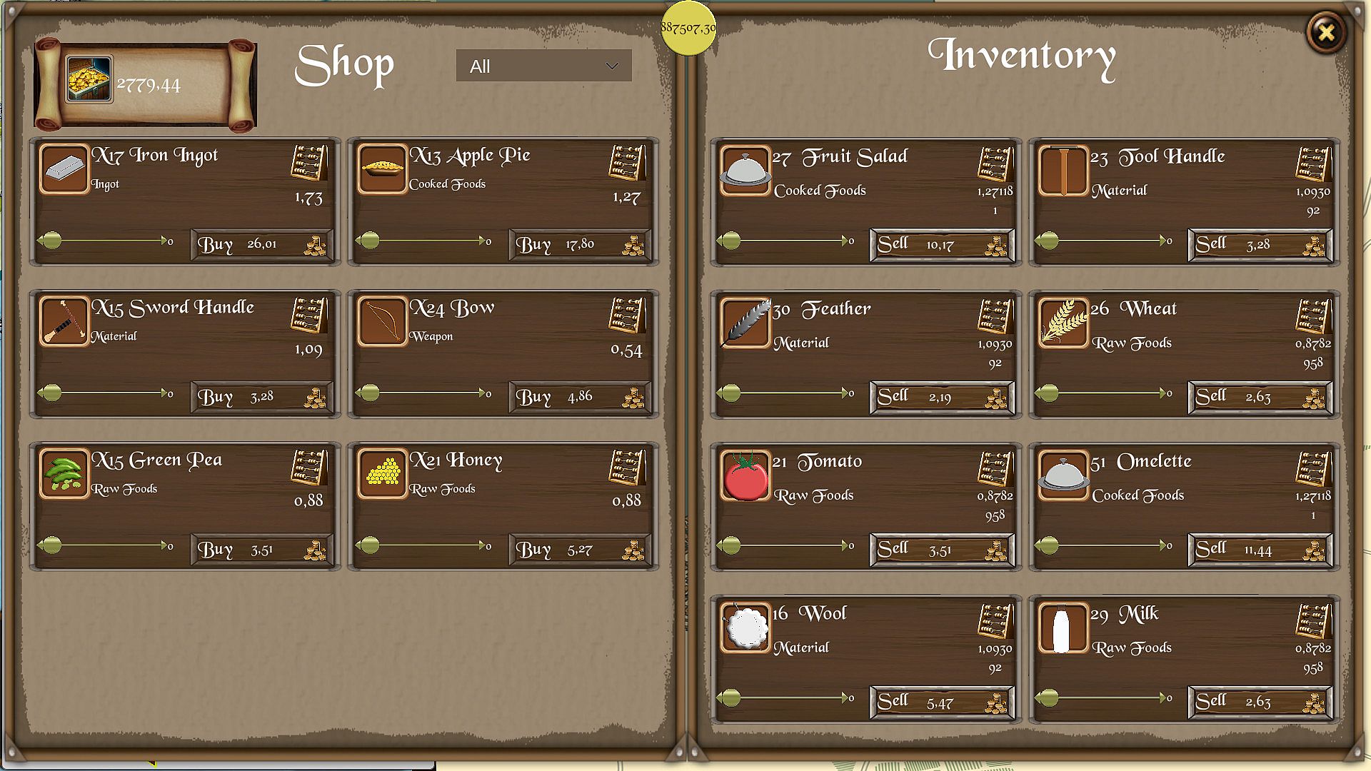 You can have your own stores in the cities. You can decide the price of the goods. However, you should pay attention to the price rates of the city since the higher price means a lower probability of a sale. Each time you sell a good, you would earn some reputation. With enough reputation, you can sell your goods for even higher prices. However, it is hard to gain a reputation in the bigger cities.