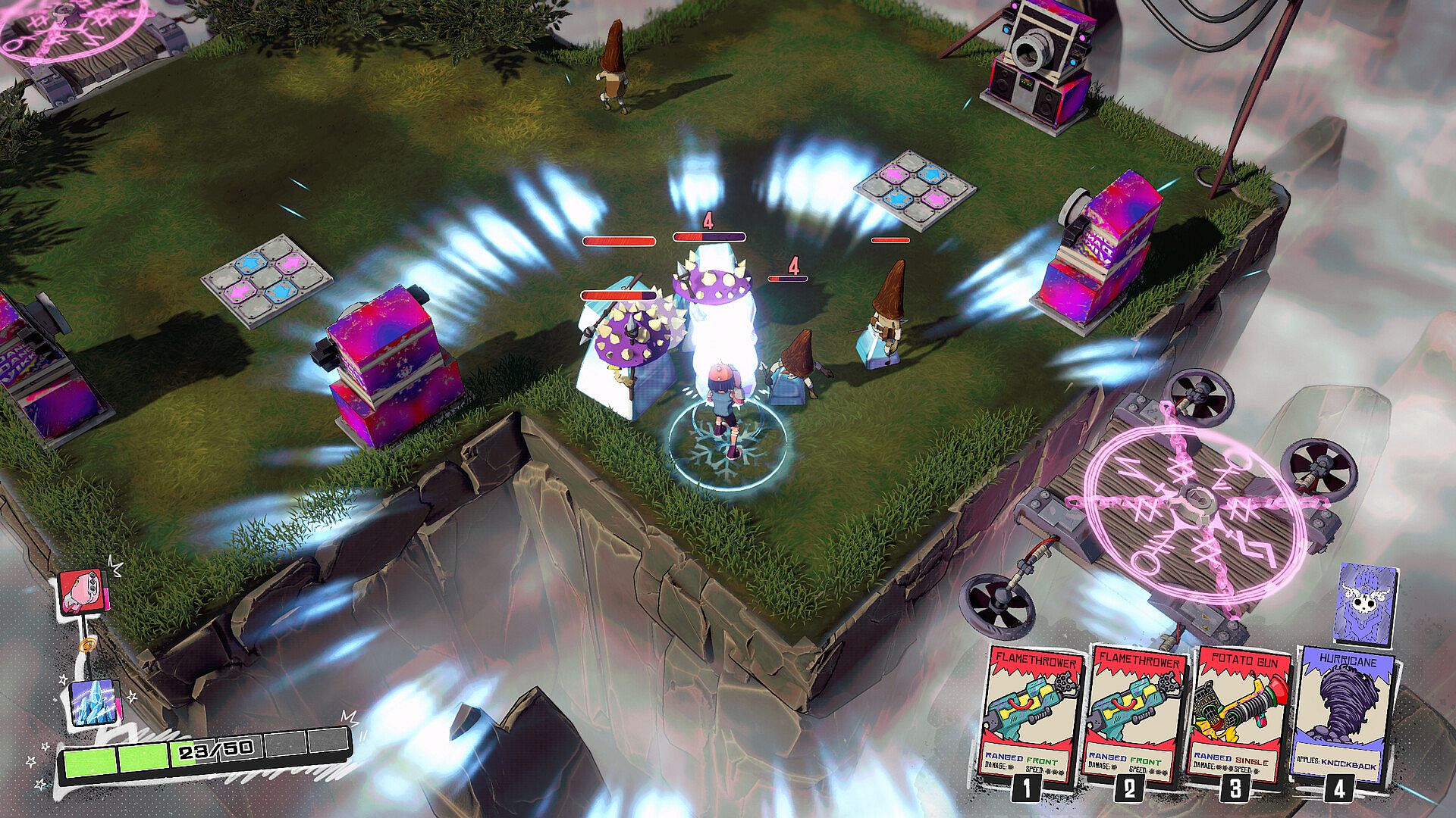 Your creativity is your strongest weapon. Combine cards in unexpected ways to unleash devastating effects. Turn a simple Flamethrower into a swirling inferno of destruction by pairing it with the Hurricane card. Every weapon has multiple combos waiting to be discovered!