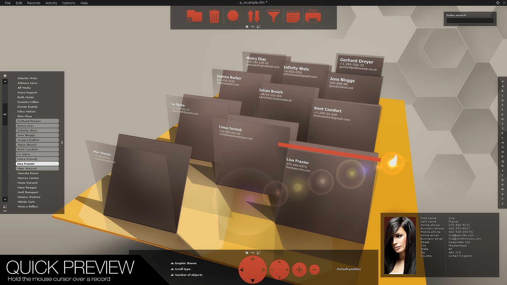 - Use the unique 3D Listbox control for a three-dimensional display of items / records.