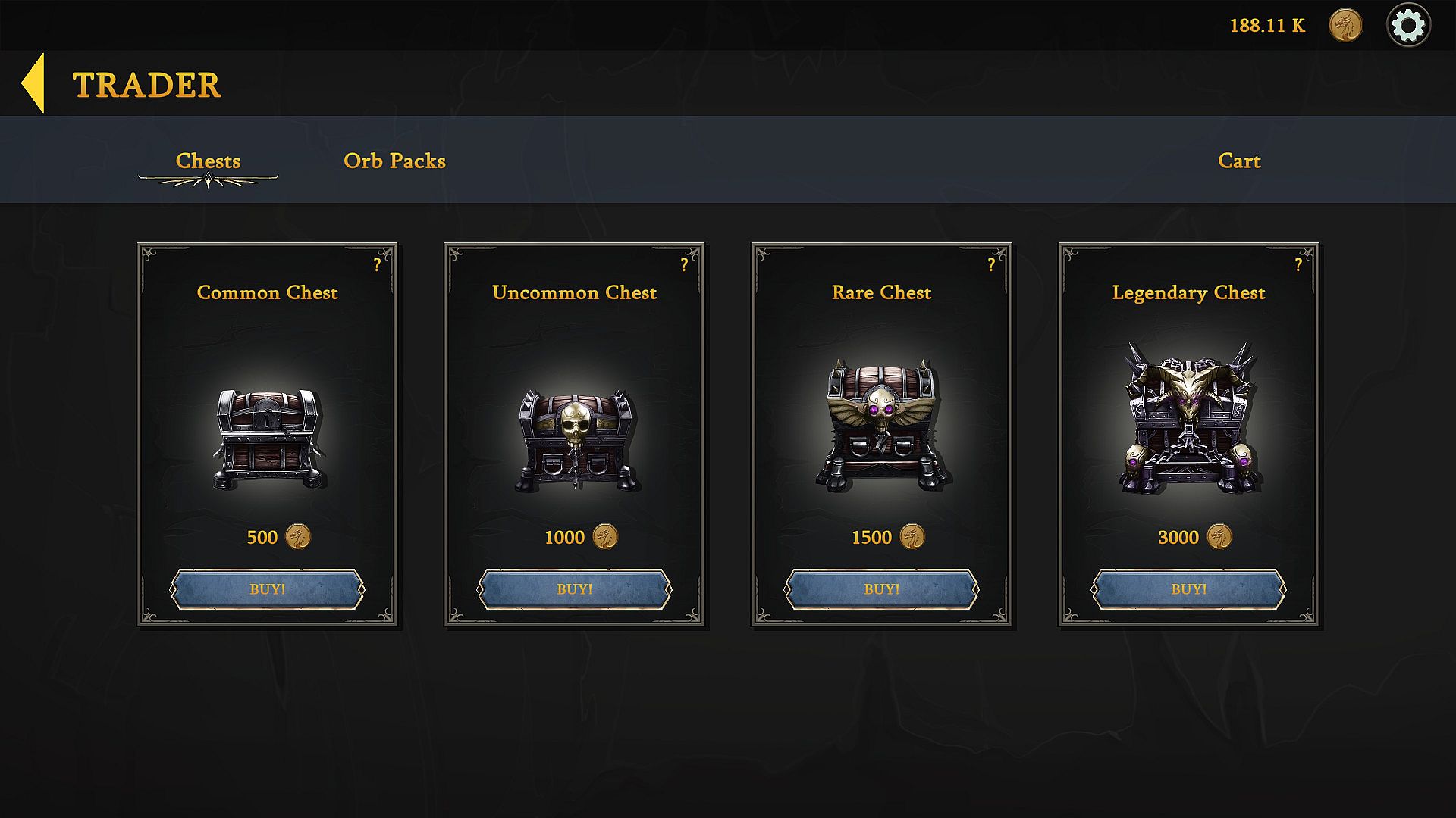 With the orbs you earn, you can always buy new chests to expand your card collection.There are different chests to choose from which ones each containing five new trading cards.