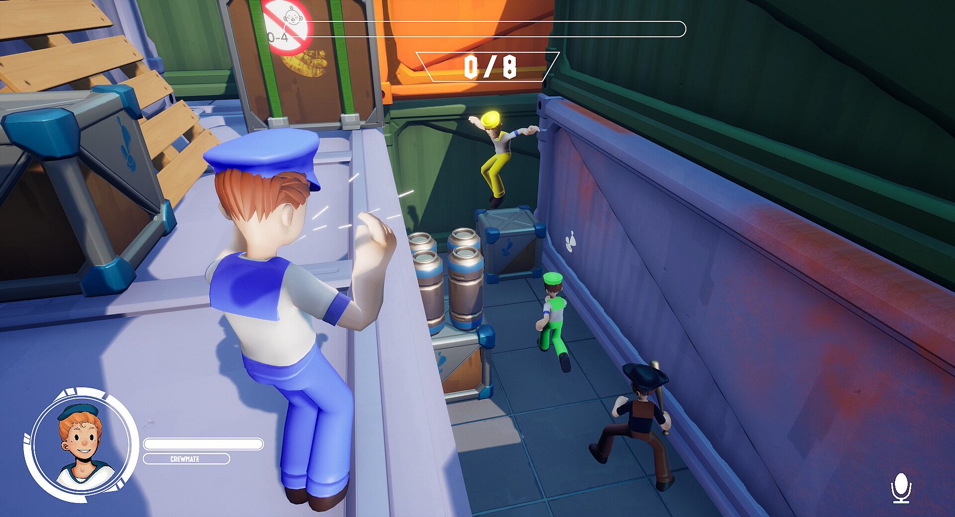 • Crewmate: Has to set up the equipment with their fellow crewmates and escape the ship. Crewmates can also pick up the captain's hat in case they have died. This will promote the crewmate to captain!