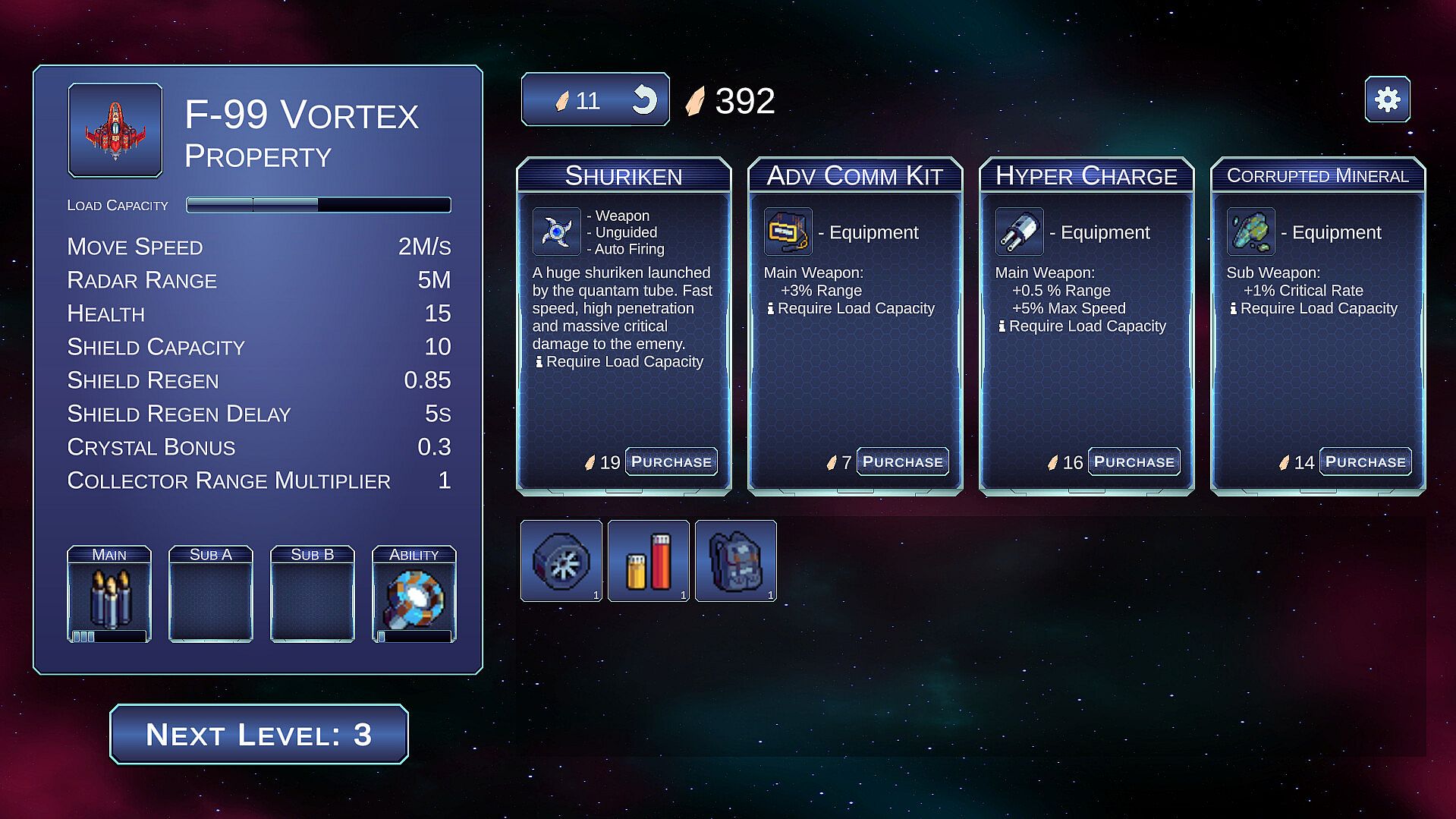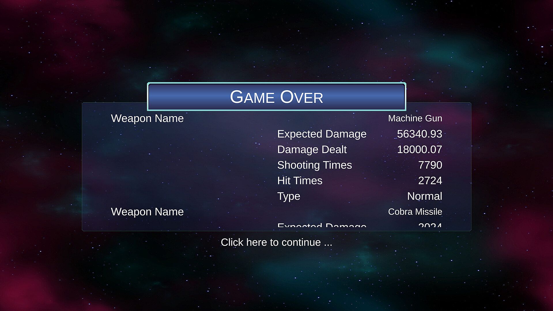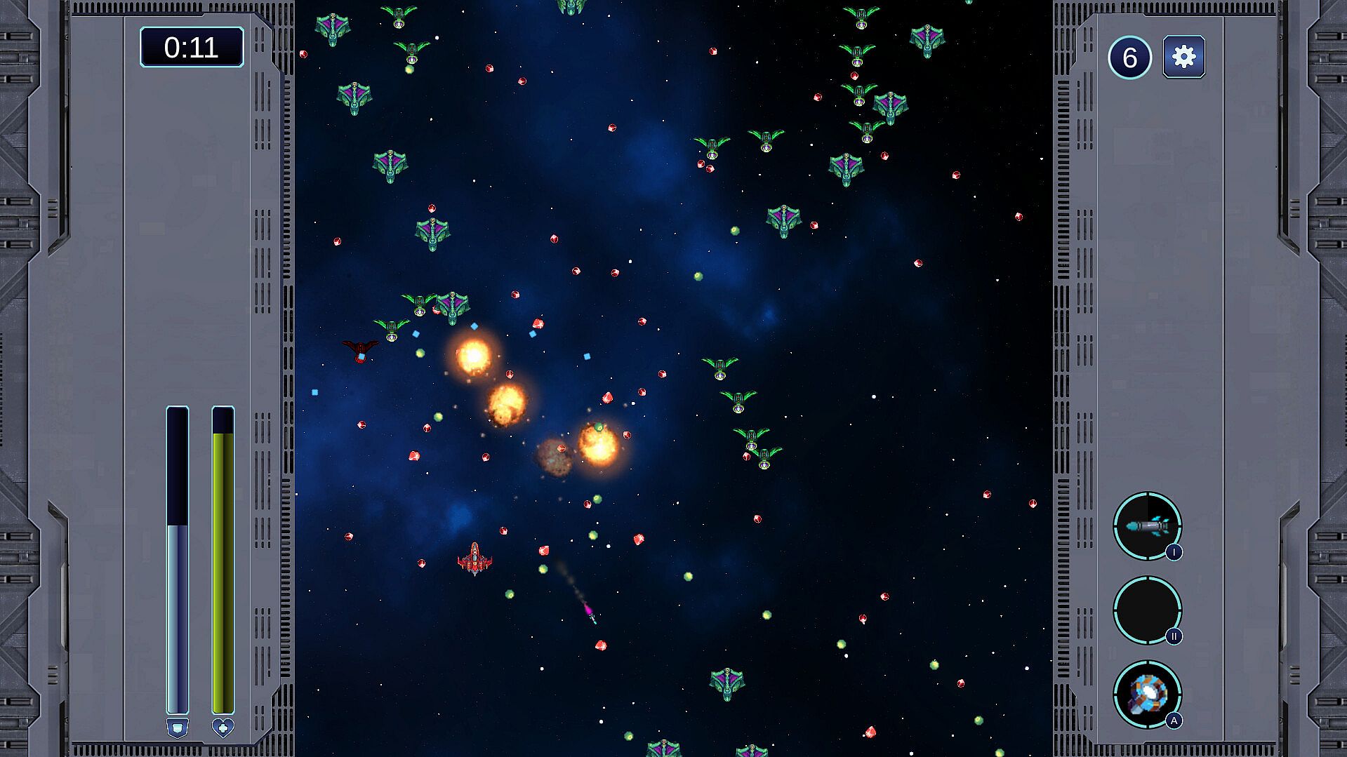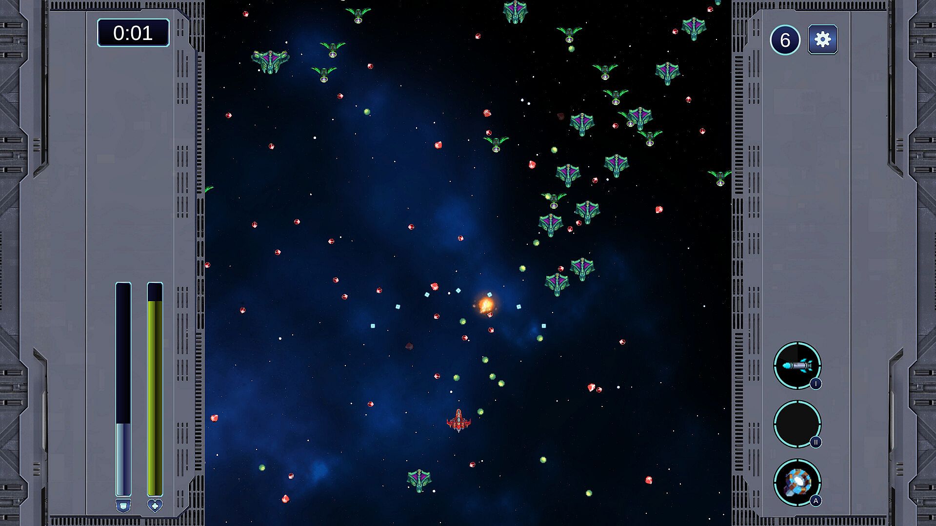 Good news is that the player fighter is not fragile. It is equipped with an energy shield and a HP bar.