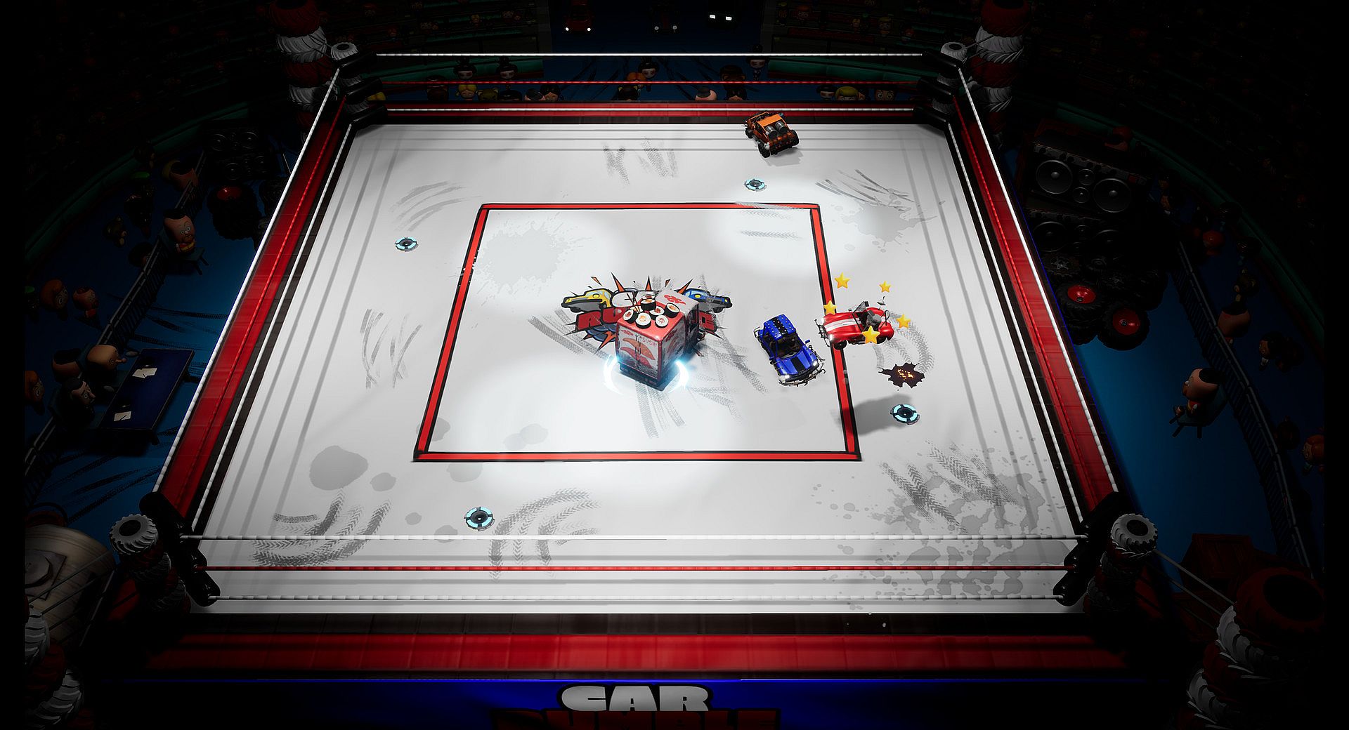 CARRUMBLE is a online brawl fighting game, in which 4 players face off in dynamic arenas aboard a wide range of customisable vehicles each characterized by a unique appearance and special move! Climb aboard and take the wheel of you chosen vehicle, get ready to use your boosts to perform Wrestling acrobatics in a contest where there can be only one survivor. CARRUMBLE is a no-holds-barred game where any other player can be an enemy or an ally, at least until it's convenient.
