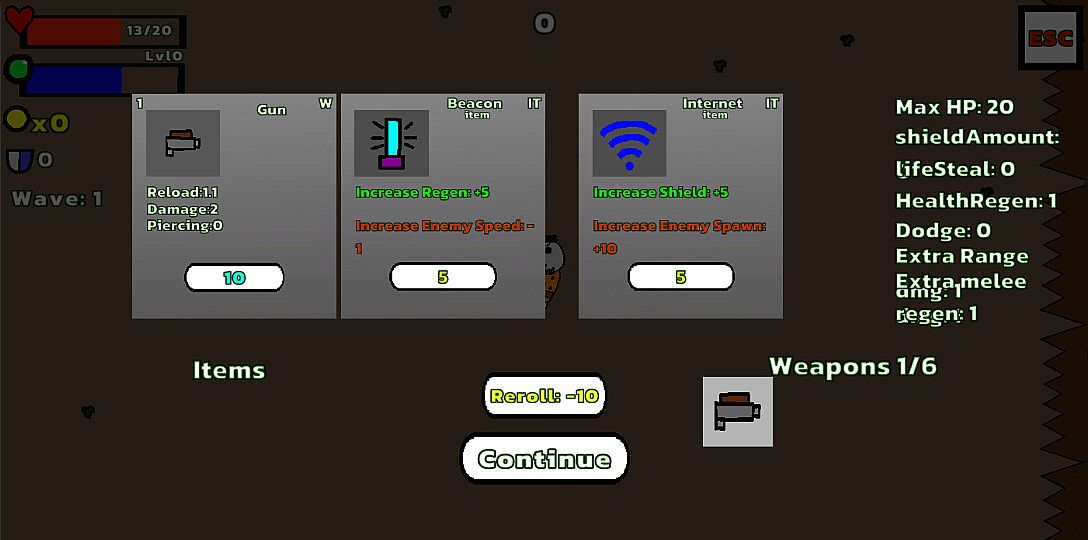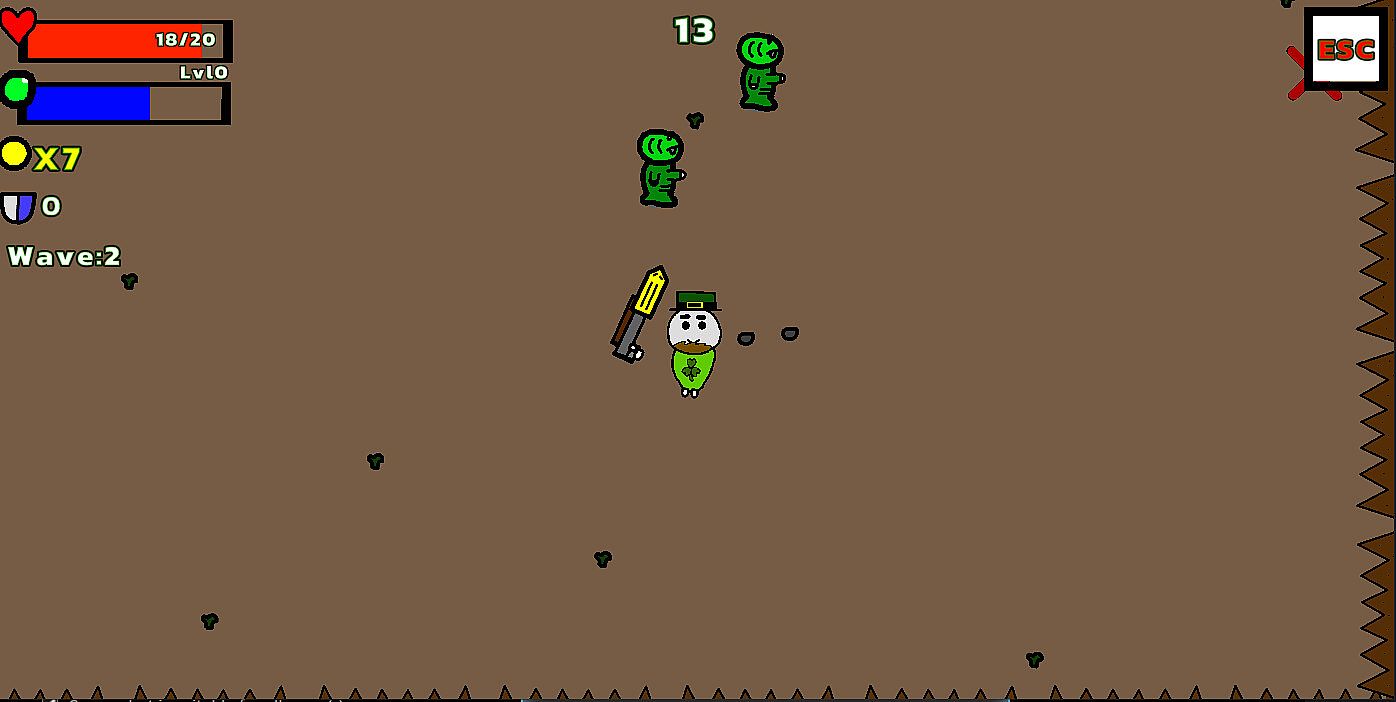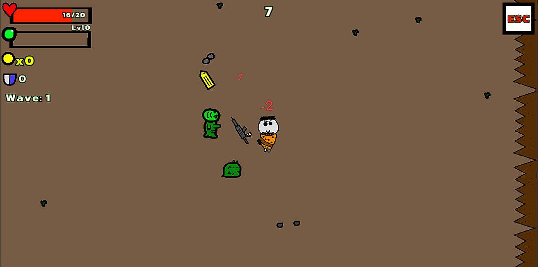 A top-down 6-weapon RogueLike game centred around cartoonish characters and funny-looking enemies.