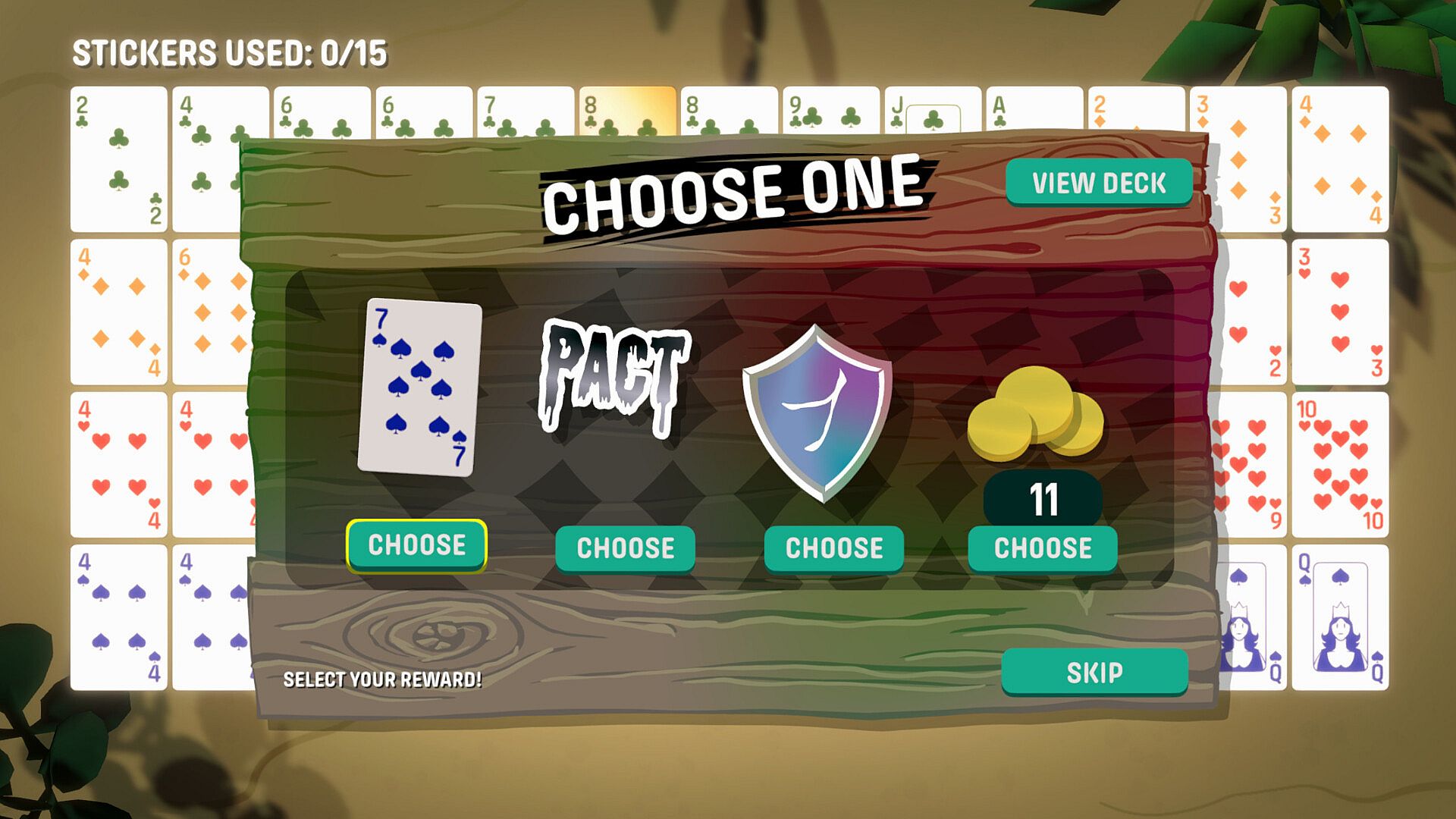 Your standard 52‑card deck can be upgraded with collectible stickers: from simple score boosts, to hand‑specific synergies, to wild mechanic‑benders that transform cards or even the rules themselves.