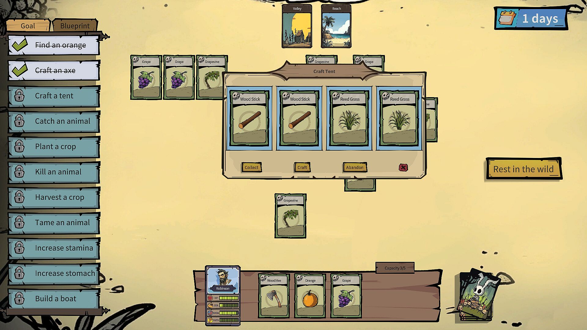 Castaway Cards is a turn-based card survival game. Explore and gather resources. Craft cards to build tools, hunt, and farm. Delve deeper to find secrets and powerful new recipes. Plan your moves and build a raft to escape. Every decision could be your last. Will you survive?