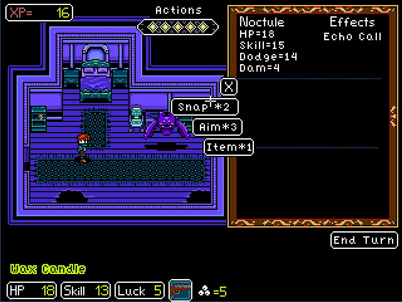 * Turn-based, Action point combat system: Choose to make Aim or Snap shots.