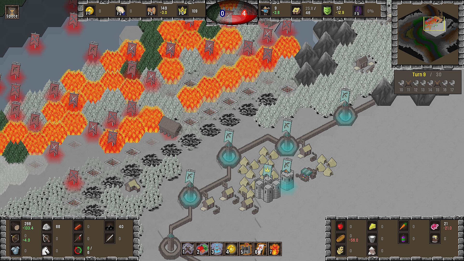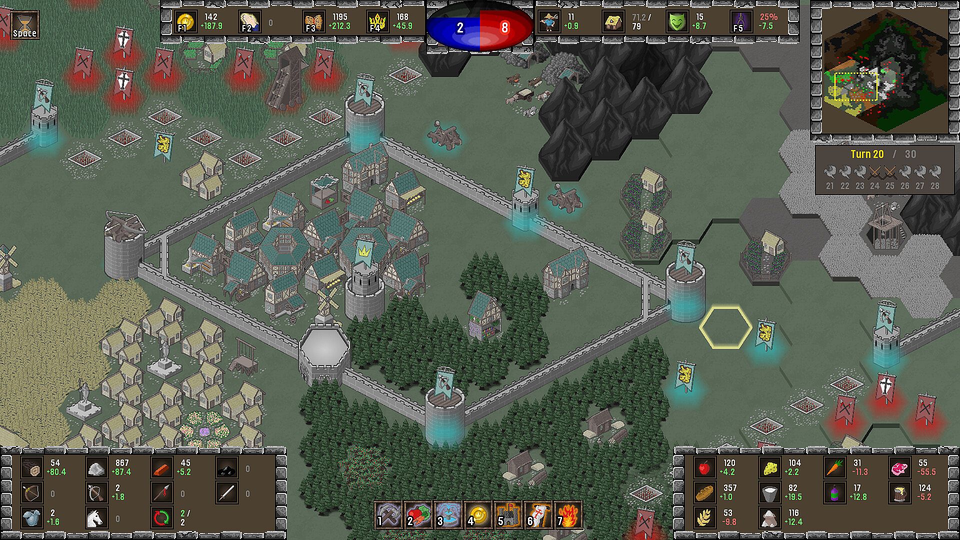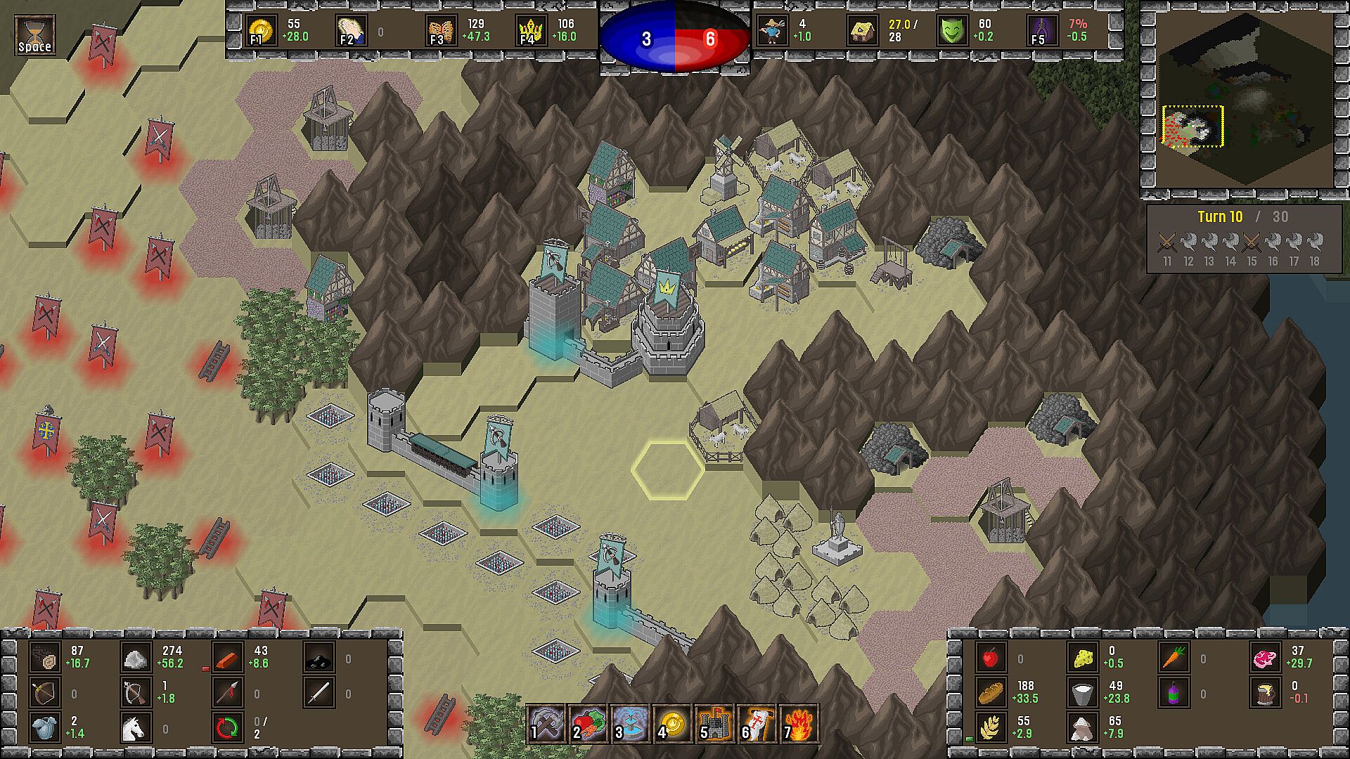 Castleon is a turn-based castle builder strategy game. Your goal is to either survive for a certain amount of turns, or conquer all the enemy Lords.