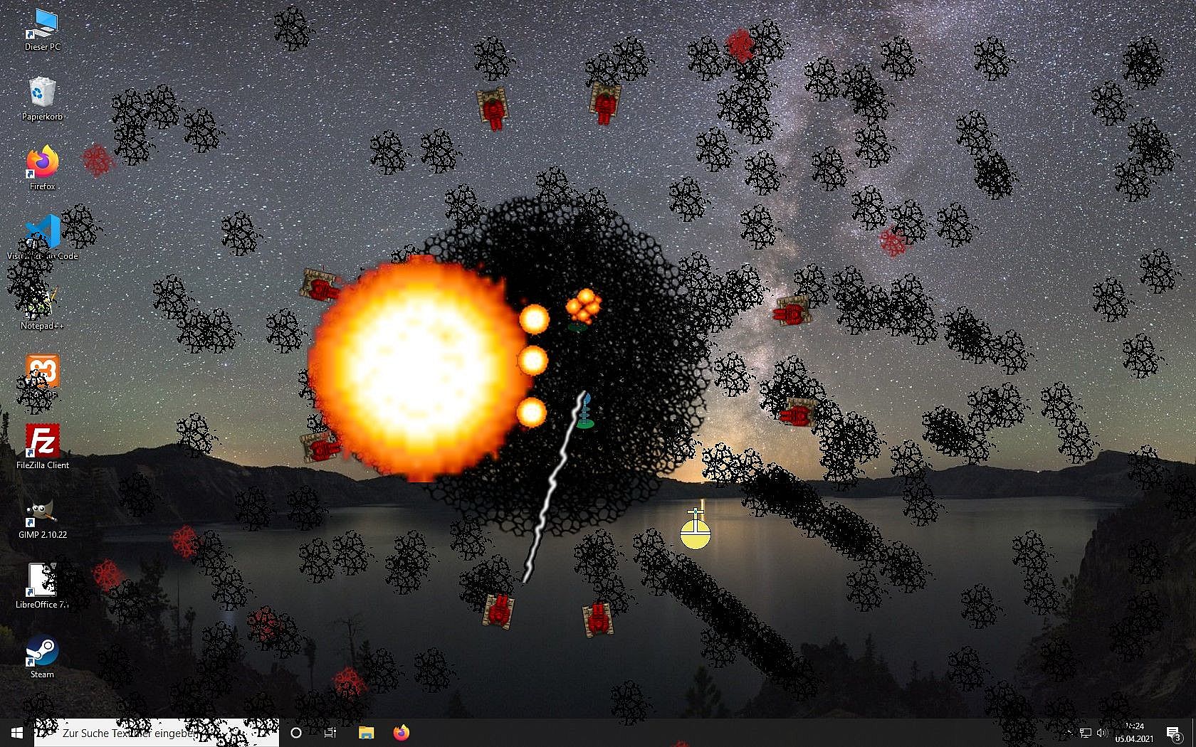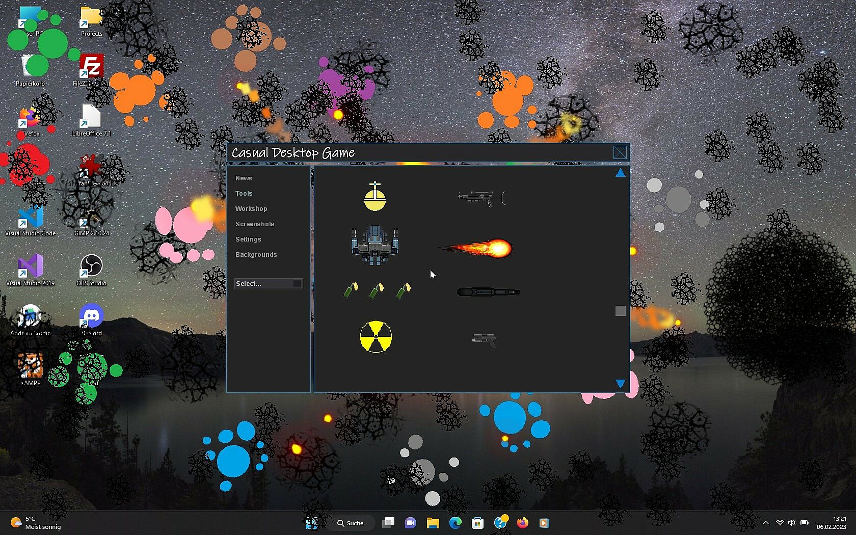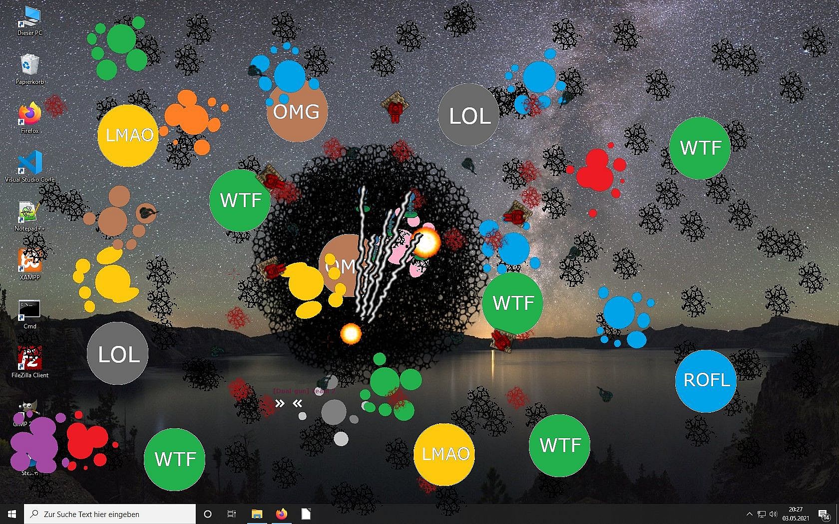 Then this game is the right choice for you! Casual Desktop Game is a fanmade revival of the ancient Desktop Destroyer game where you can "destroy" your screen with various tools. Or you can lend back and watch entities taking combat on your Desktop.