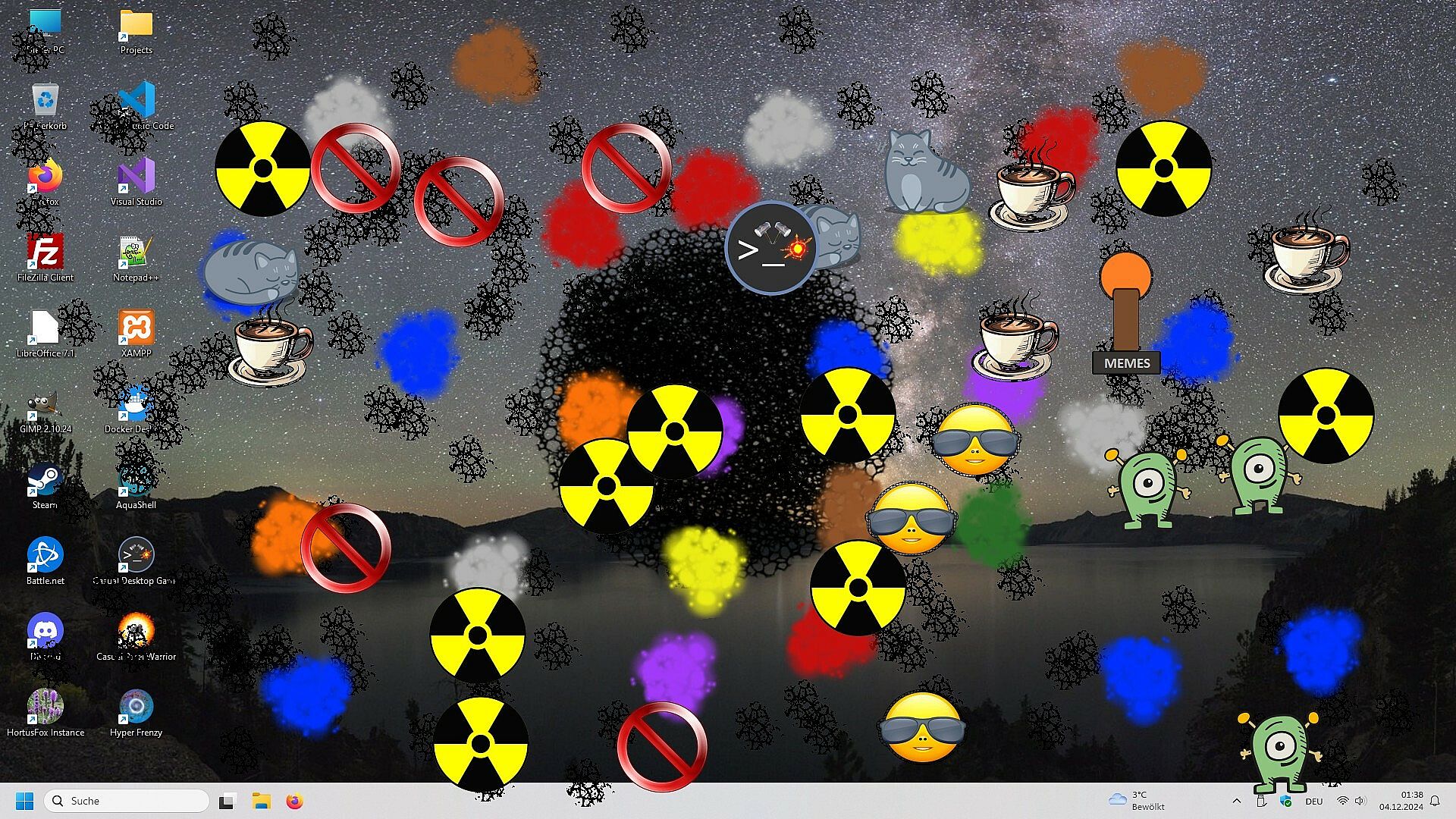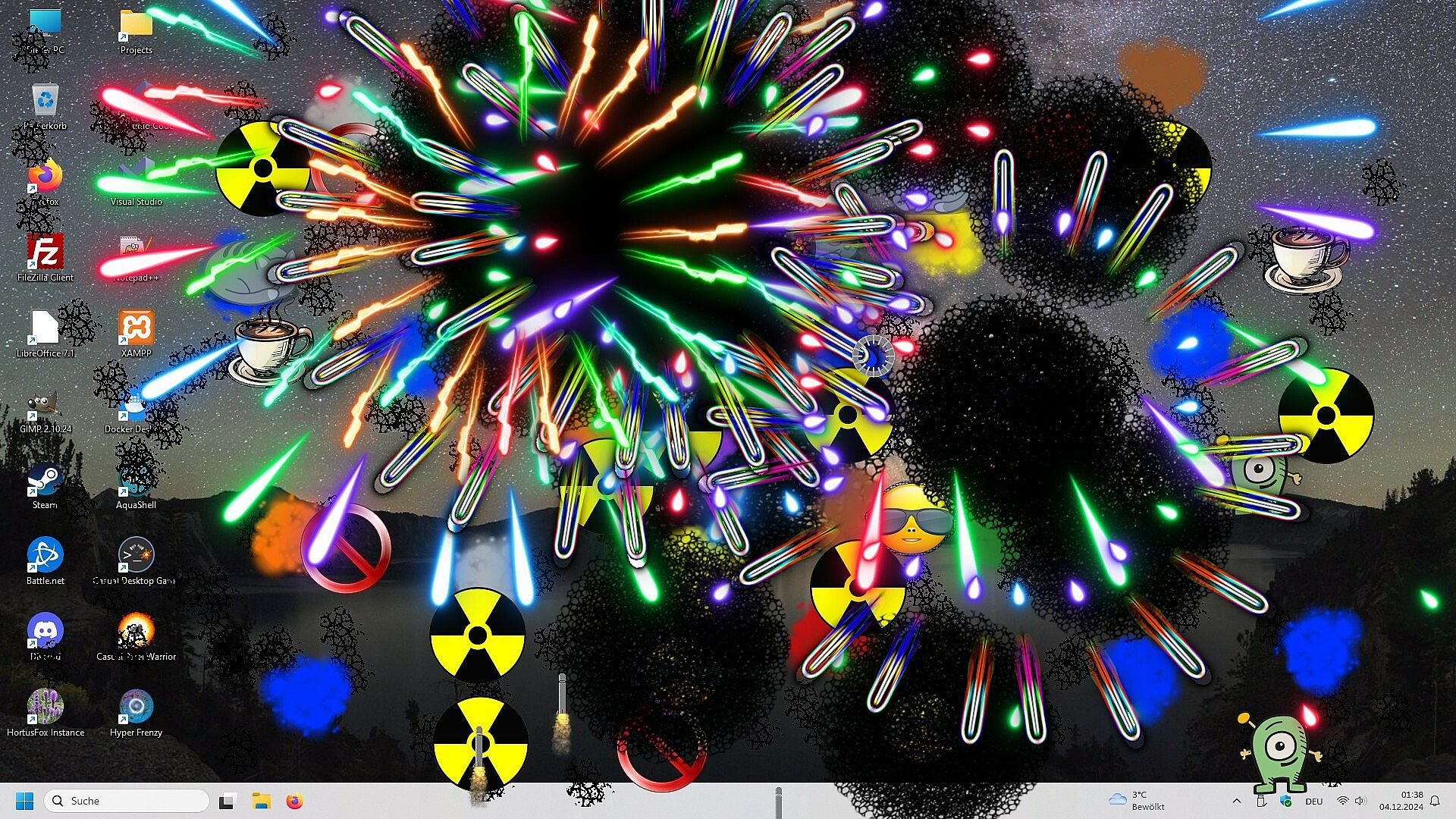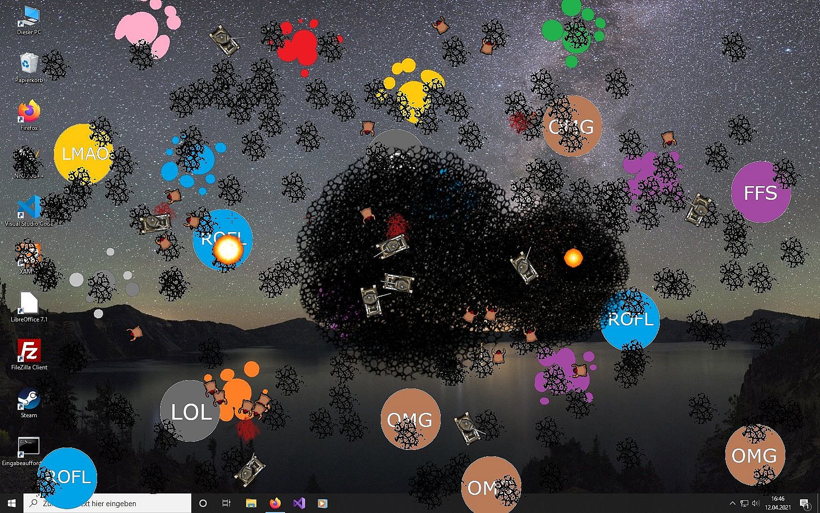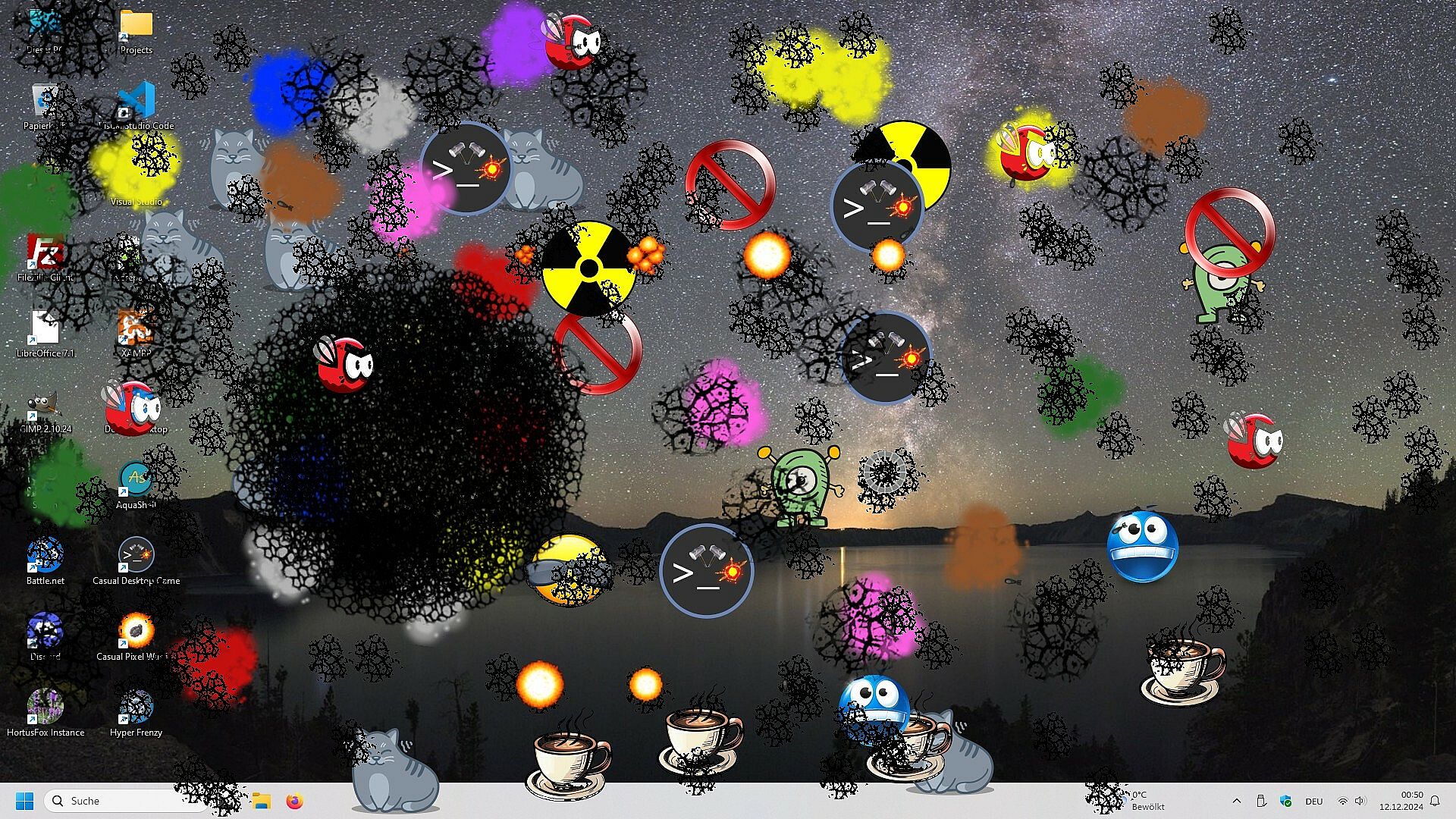 Then this game is the right choice for you! Casual Desktop Game is a fanmade revival of the ancient Desktop Destroyer game where you can "destroy" your screen with various tools. Or you can lend back and watch entities taking combat on your Desktop.