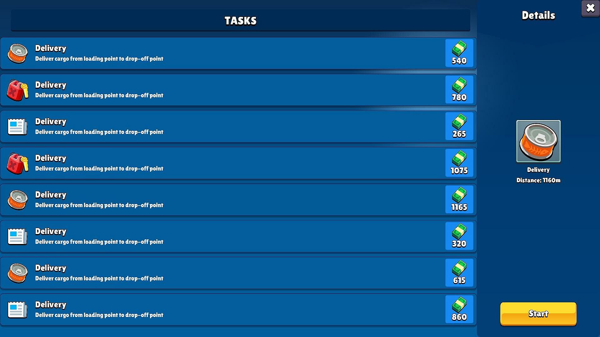 - Choose a delivery mission, head to the location and pick up the truck and cargo