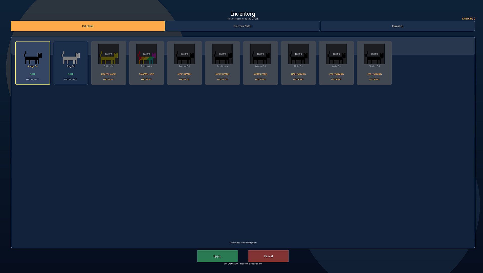 • Cosmetic cat and platform skins.
