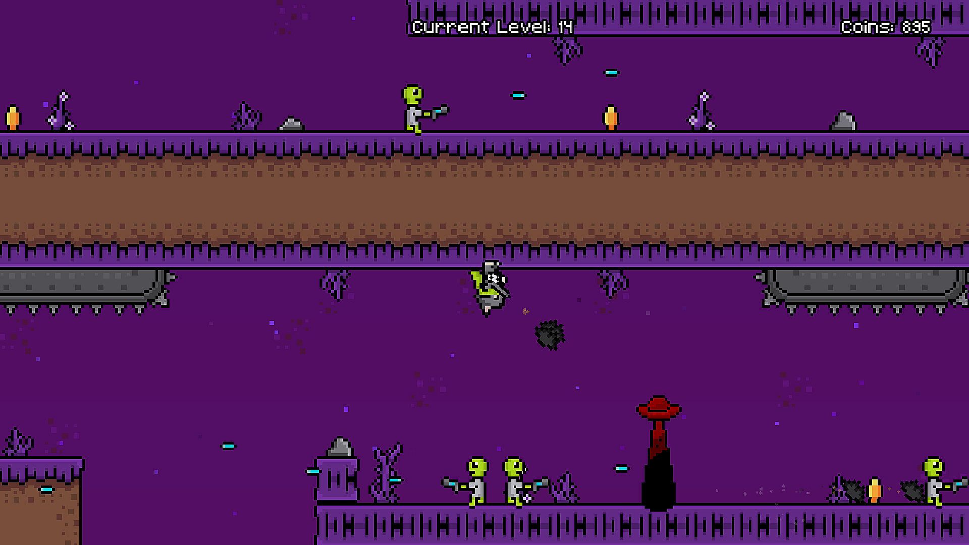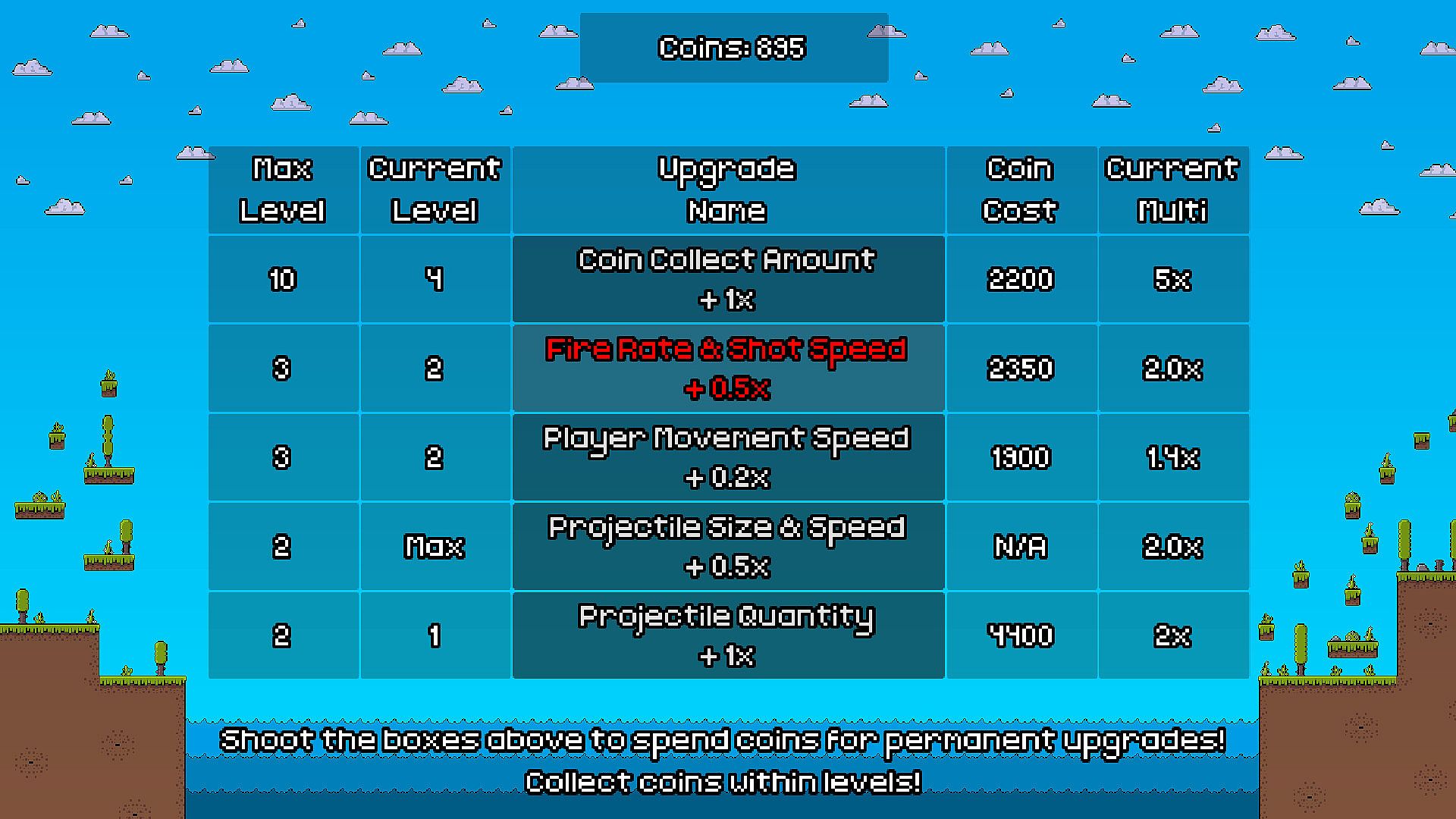 With tight controls, challenging platforming, and explosive combat, every level is a test of skill and reflexes. Upgrade your cat's powers—from a basic pistol to a fully automatic weapon, double jumps and bubble shield — as you prepare to face off against world bosses.