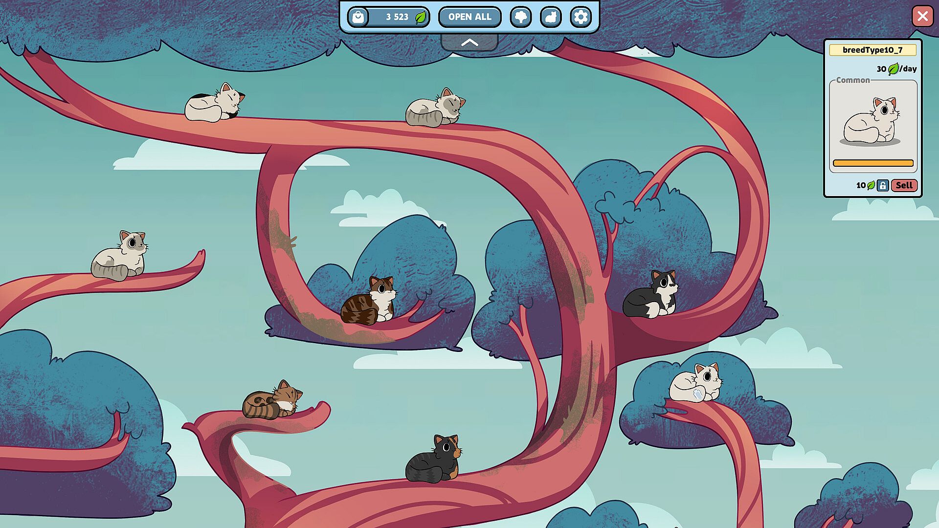 Your task is to nurture the cats, watch them grow, and decide which ones to keep in your collection and which to sell for profit. Explore the tree and uncover all its secrets while enjoying the peaceful and soothing atmosphere of the game.