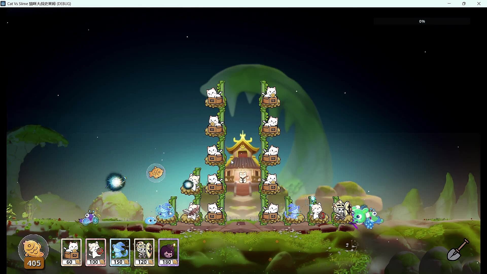 This isn’t your average tower defense game: the gravity mechanics on the 2D platform add endless variables to the battlefield. Cats can stack like a pyramid, easily reaching slimes fluttering in the air. Meanwhile, enemies rushing on the ground and swimming in the water will launch simultaneous attacks from both left and right, targeting the cat house you’re defending—doubling the strategic depth instantly!