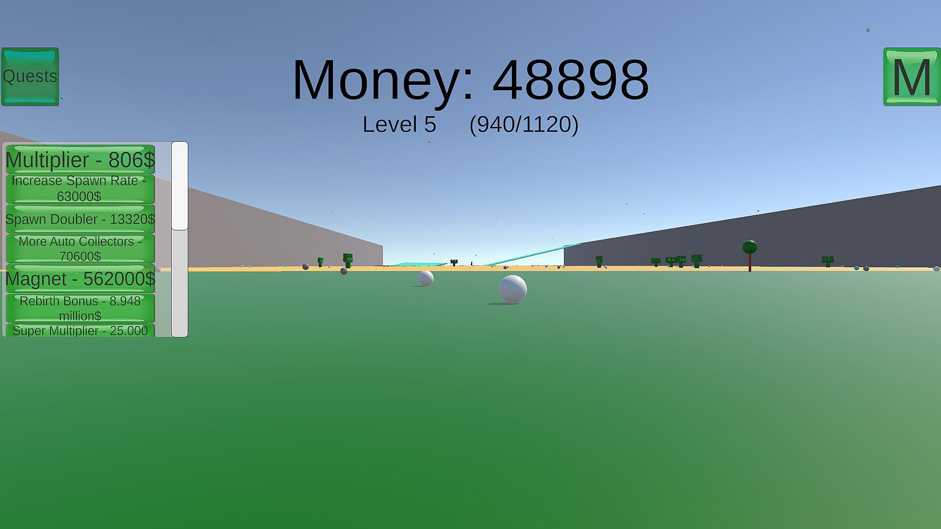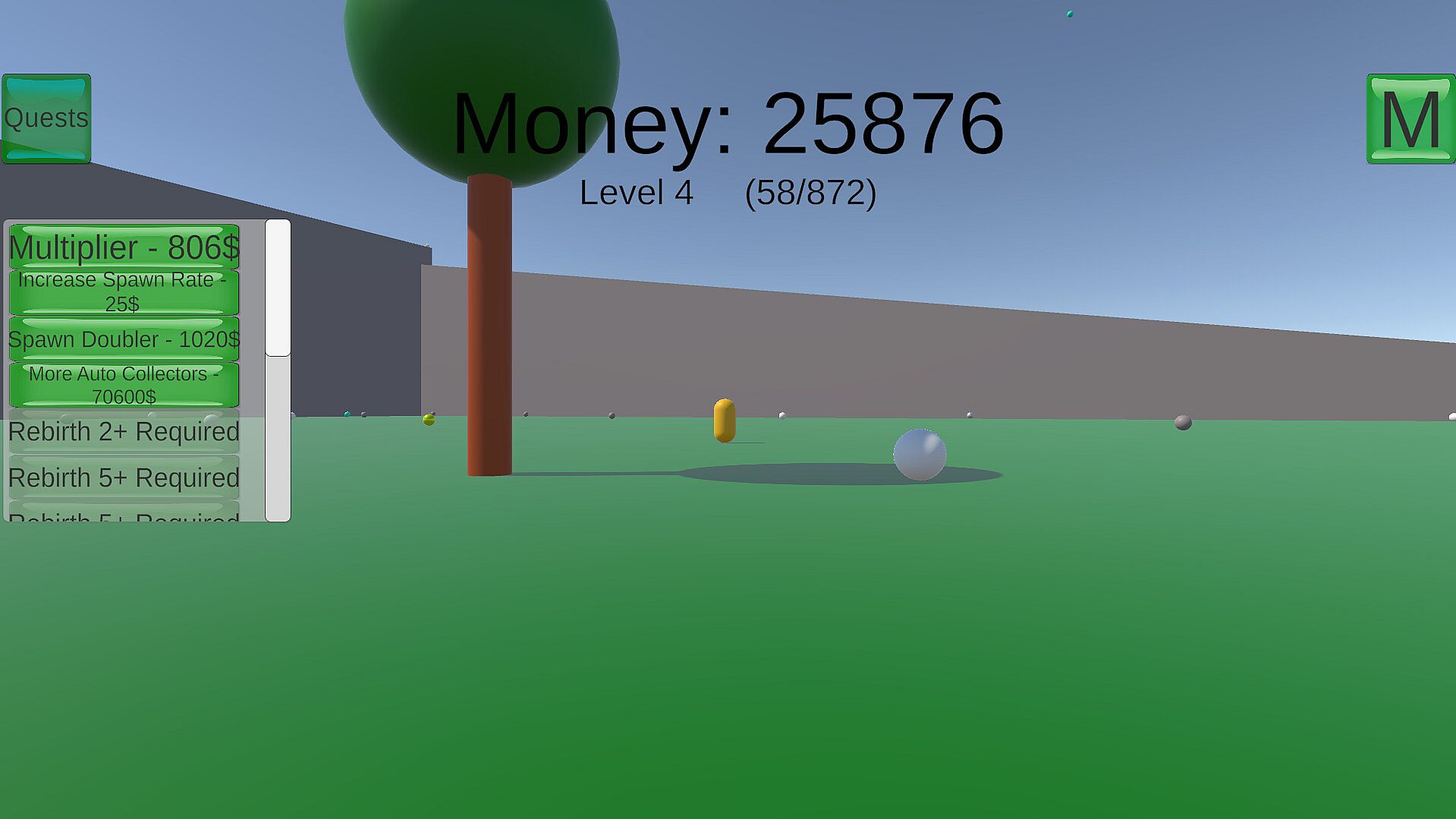 In Catch The Beaukes, Beaukes (spheres) fall from the sky, and you need to collect them to earn money. Then you can upgrade things so you earn even more!
