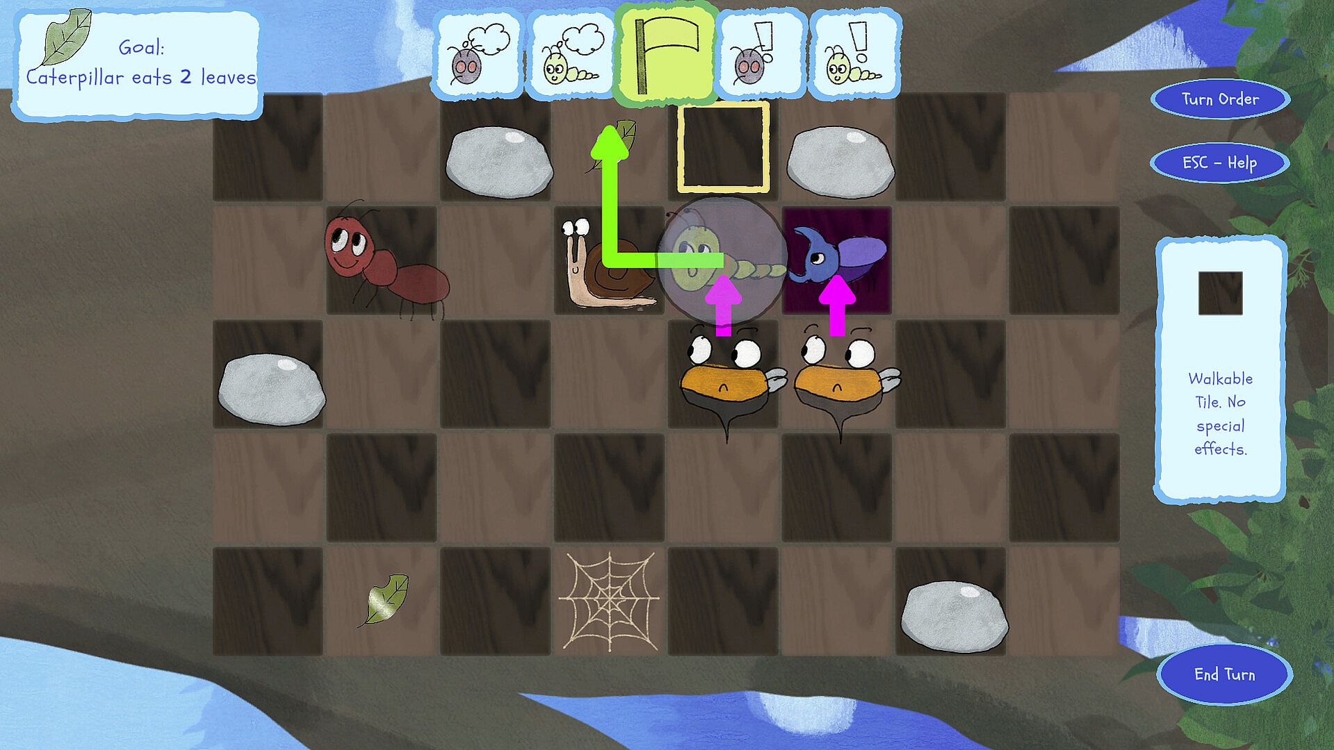 Guide the baby Caterpillar on a 2D grid to his snacks with the help of his chosen family. Push obstacles away to clear a path and swap places with scary enemies to avoid danger!