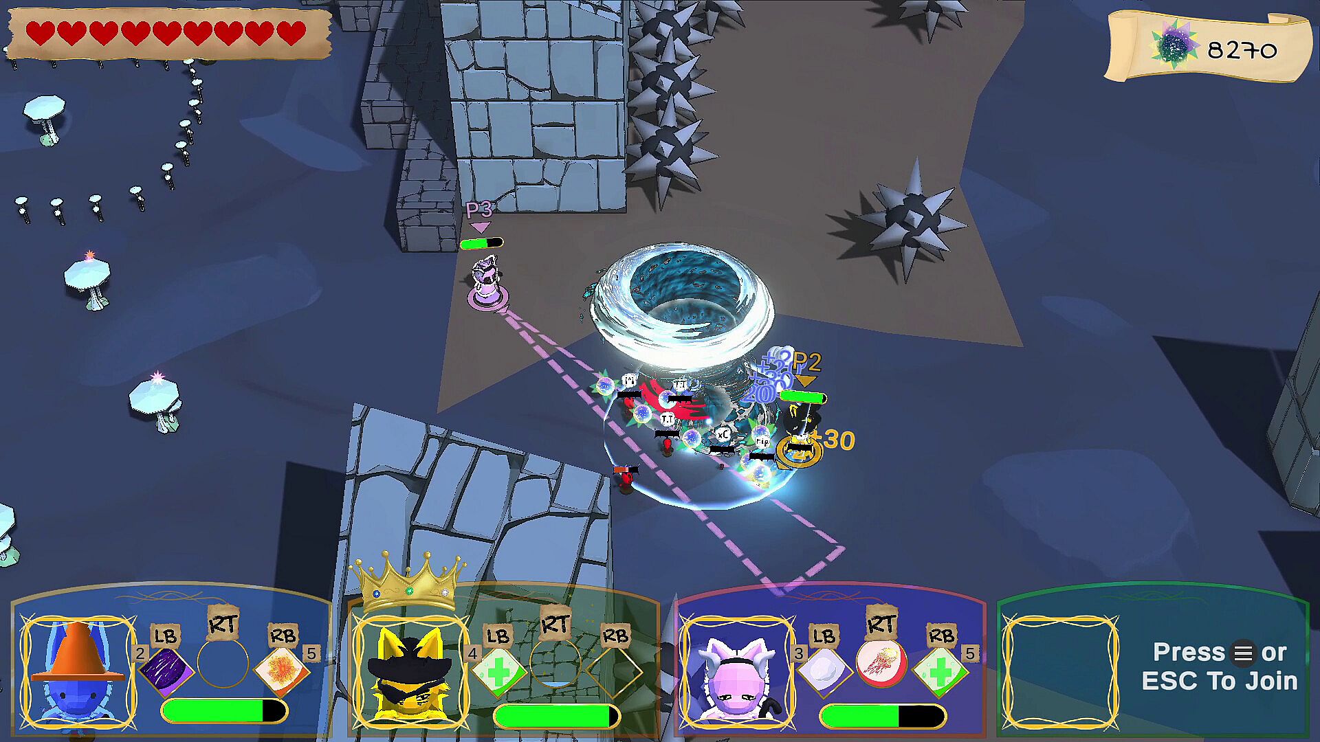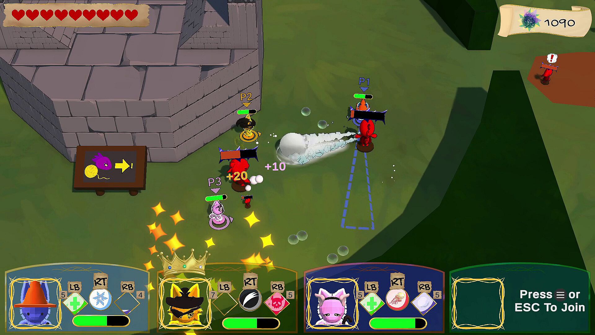 "Cats & Critters: A Dungeon Claw-er" is an enchanting party game that casts up to four players as cat wizards working together to defeat the evil dragon Frank and recover the golden yarn. This whimsical, pick-up-and-play experience captures the essence of miniature tabletop adventures with its simple controls and low-poly art style. Grab a few friends to help you defeat pesky critters, solve some puzzles, and earn magical loot. Along the way, use a variety of spells and collect the most sparkles to prove that you’re the coolest cat!