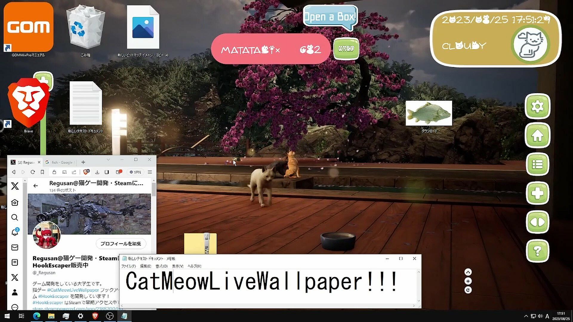 While set as wallpaper, there is a feature to reduce the frame rate and reduce the load on your computer, and a feature to automatically start when your computer starts!Peek into the slightly mysterious world of cats with "Cats Meow Live Wallpaper". Beyond the wallpaper, an unknown world of cats unfolds. Their movements are just like reality thanks to the realistic physics simulation. The beautifully rendered figures of the cats will delight your eyes.