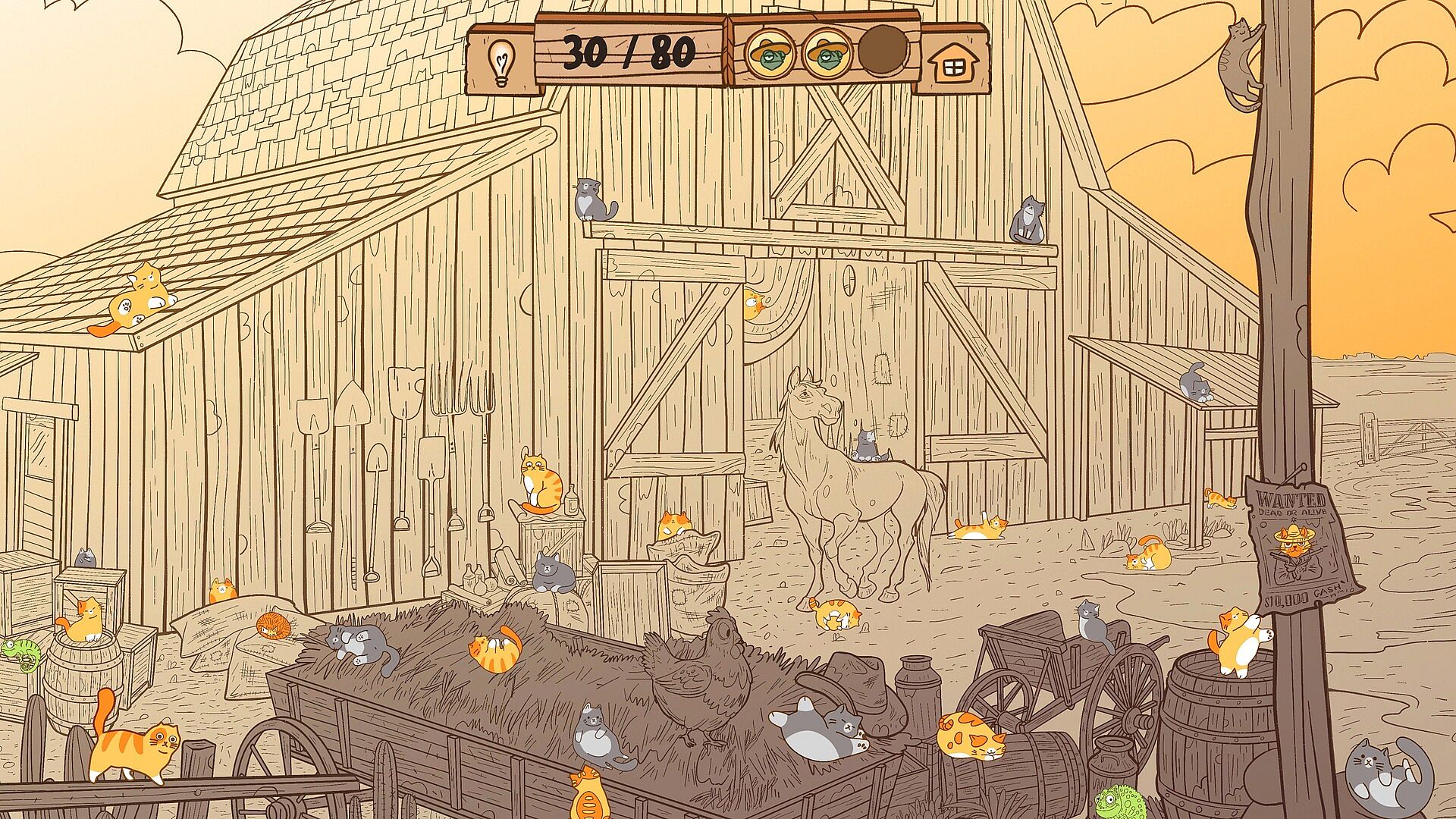 Search every corner of these nostalgic Wild West illustrations and test your observation skills. From sneaky cats hiding in barrels to ones peeking out of cowboy hats, can you find them all?
