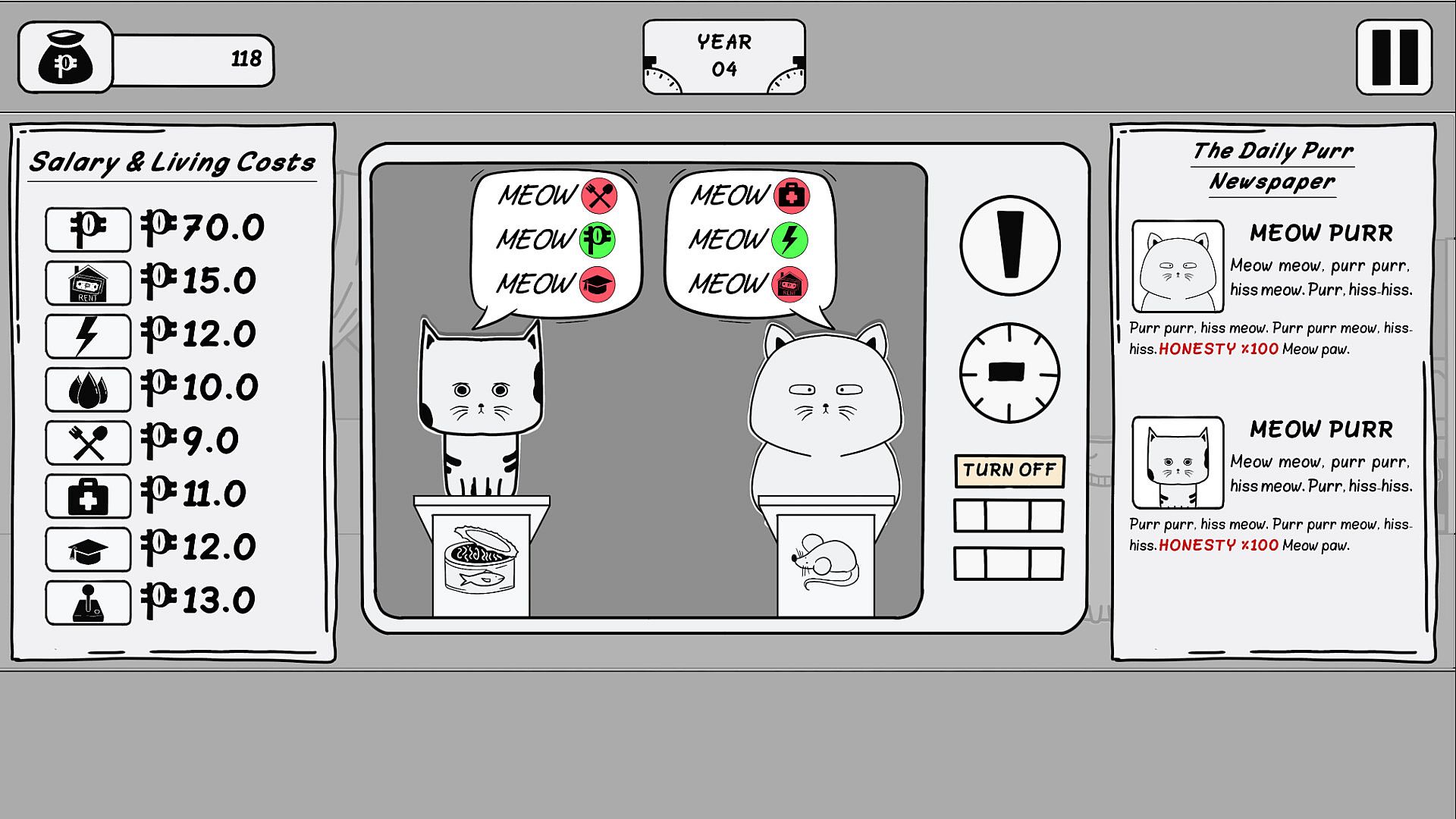 Balance your limited budget, make strategic votes, and keep your family satisfied, all while navigating the unpredictable landscape of feline politics. Will you thrive, or will the promises made by smooth-talking candidates lead your family into ruin?
