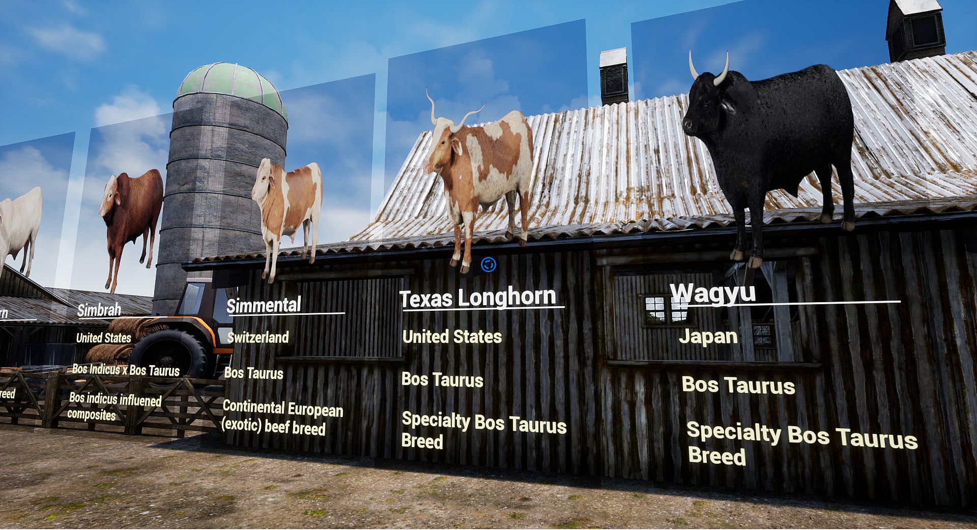 1. The Courtyard of Cattle contains an information array about twenty cattle breeds, including 3D models of each breed.