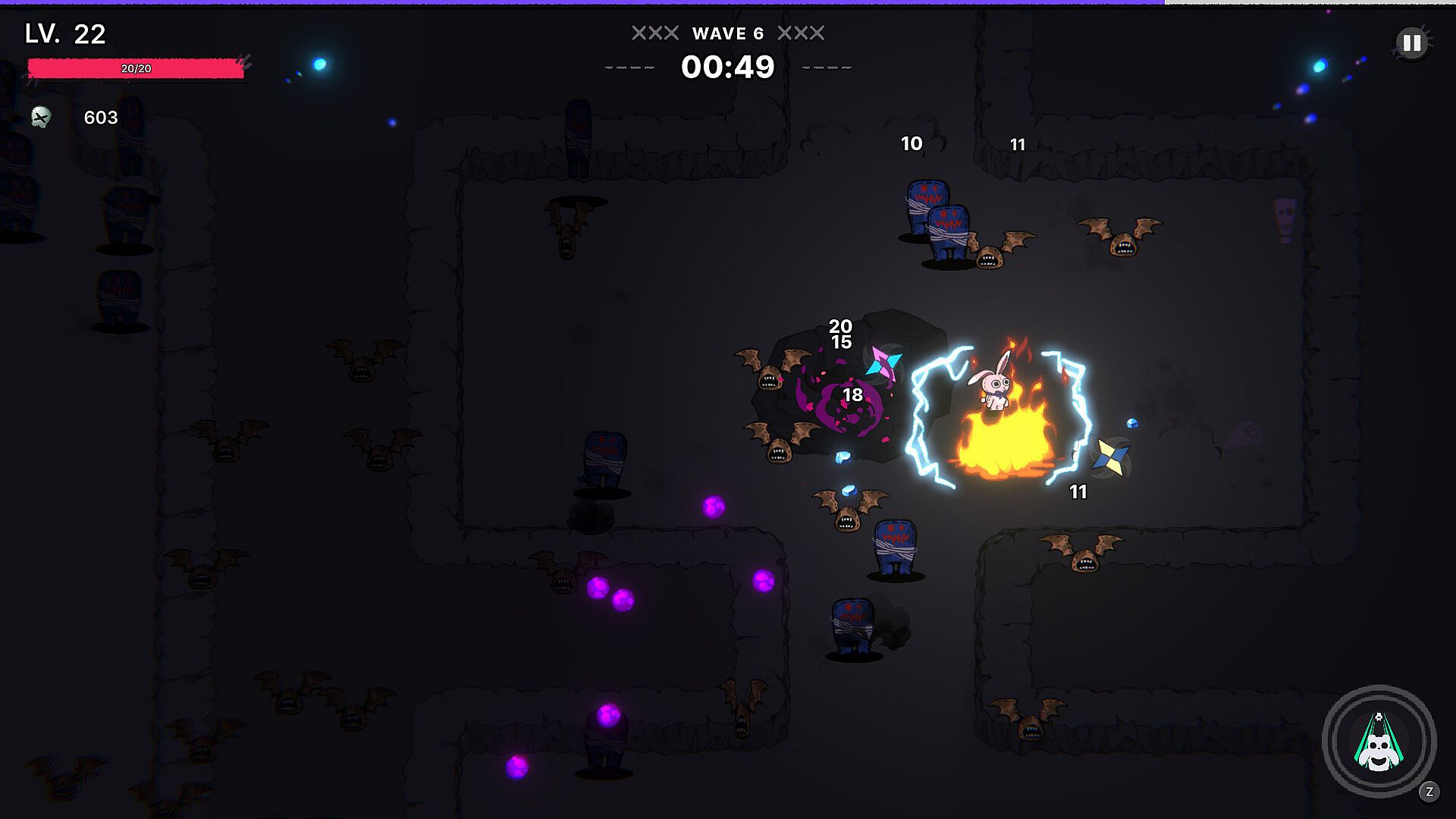 Fast-paced top-down combat against hordes of nightmare creatures