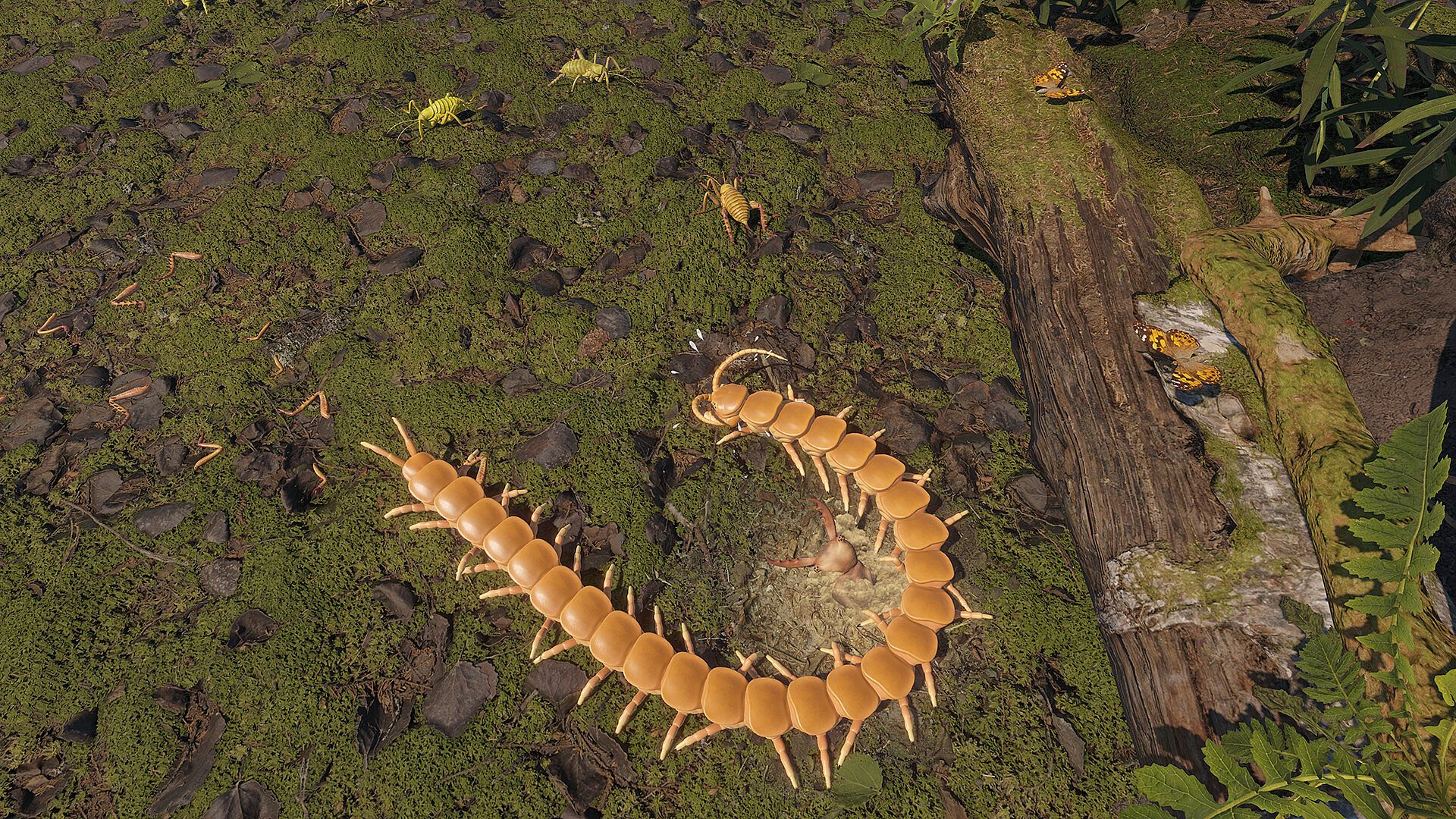 Procedural animation: Watch your centipede, prey, and predators move with lifelike responsiveness. Animations are generated in real time based on their behavior.