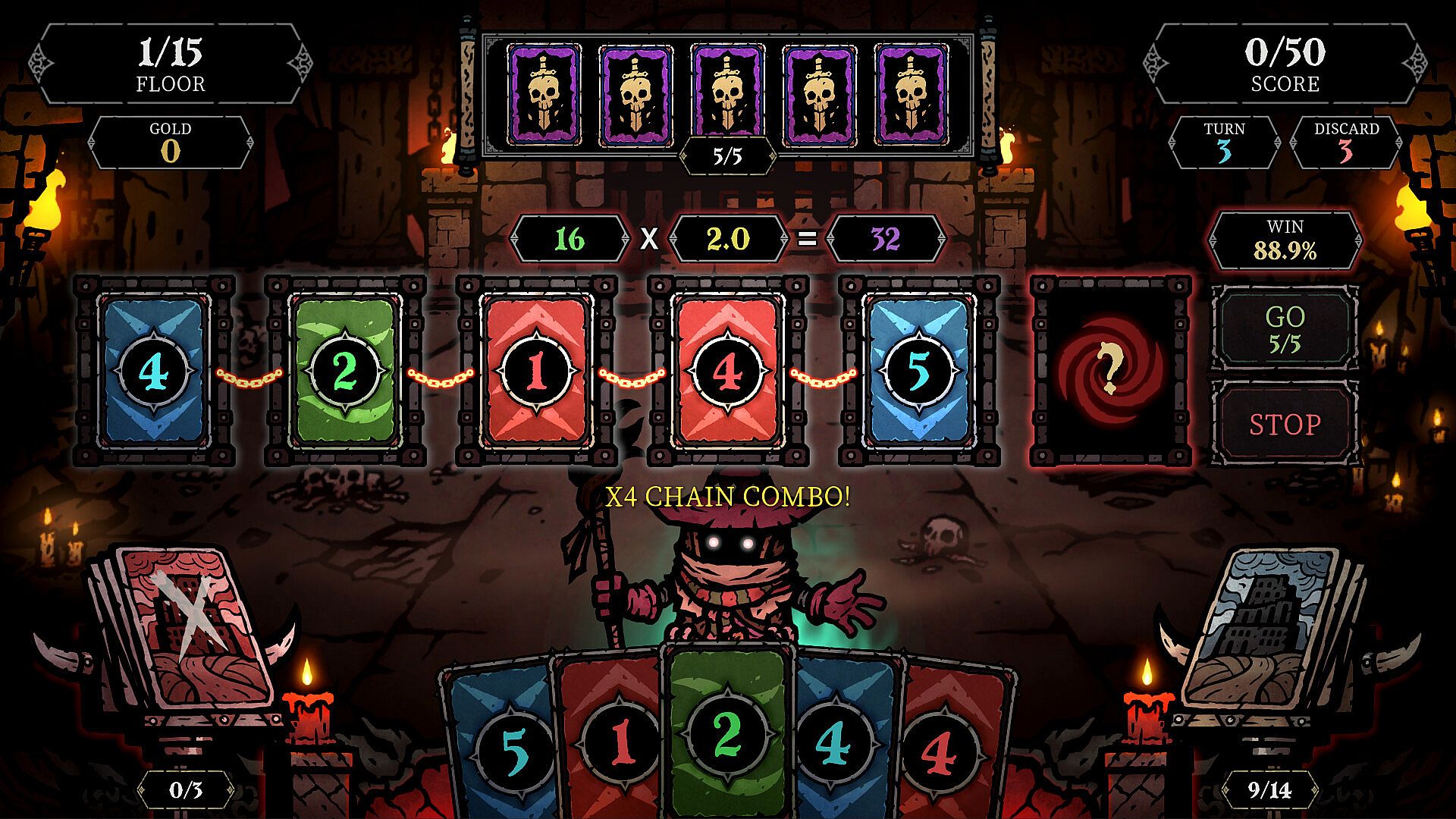 Burn through every card in your hand and you’ll unlock a bonus chance to extend your chain.