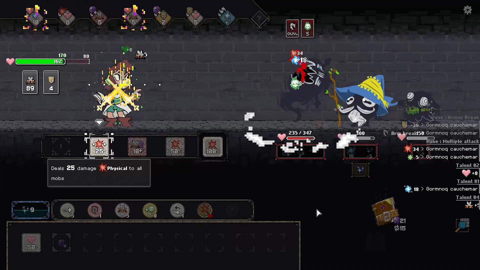 - Runes: the game's main mechanic, place them in your chain to play their effects successively.