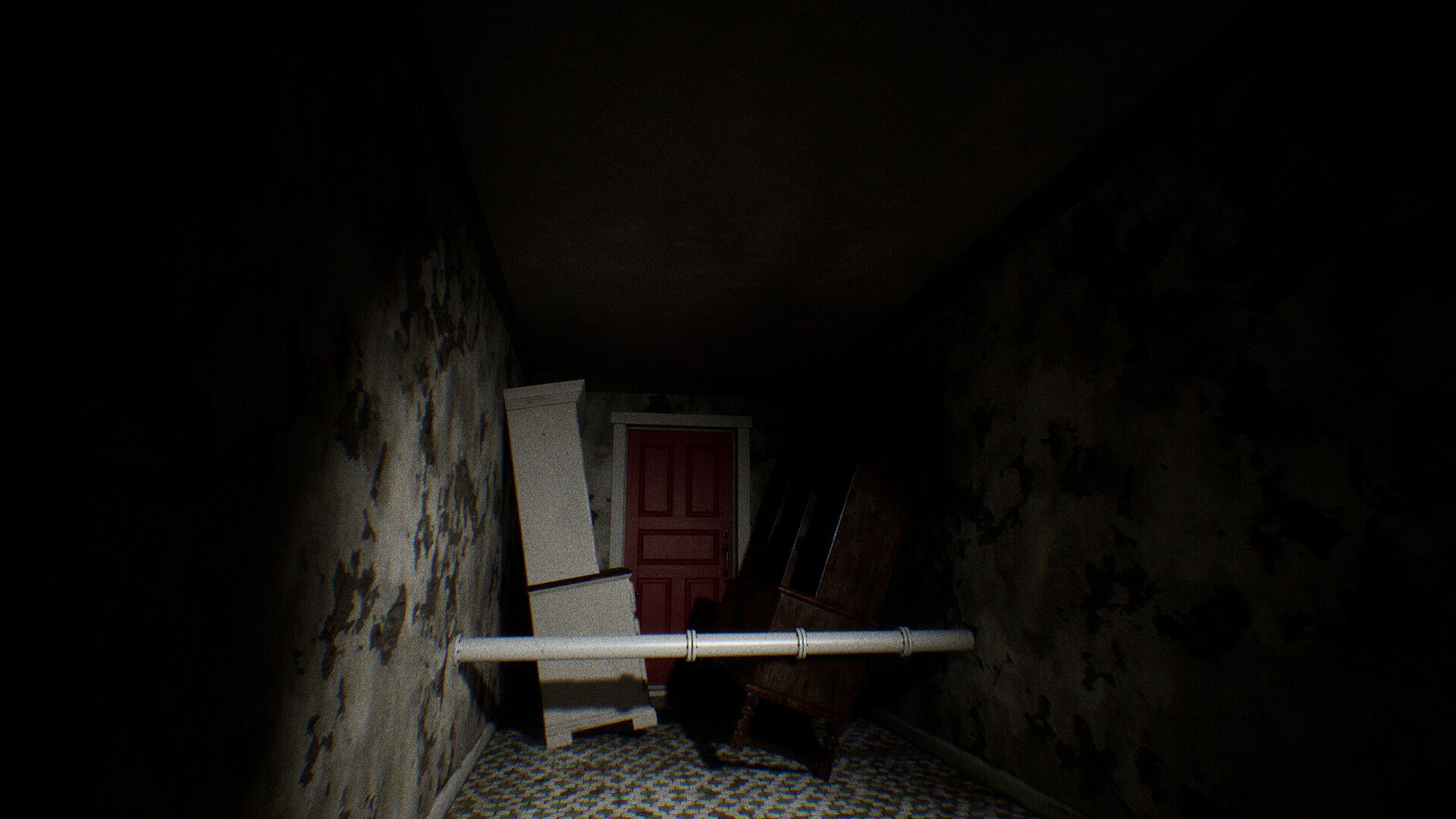 You awaken in a dimly lit, decrepit room inside the estate, your head throbbing and your senses disoriented. The walls are covered in peeling wallpaper, and the faint sound of whispers seems to echo through the corridors. Disoriented and alone, you realize that your only goal is to escape this nightmarish place as quickly as possible.