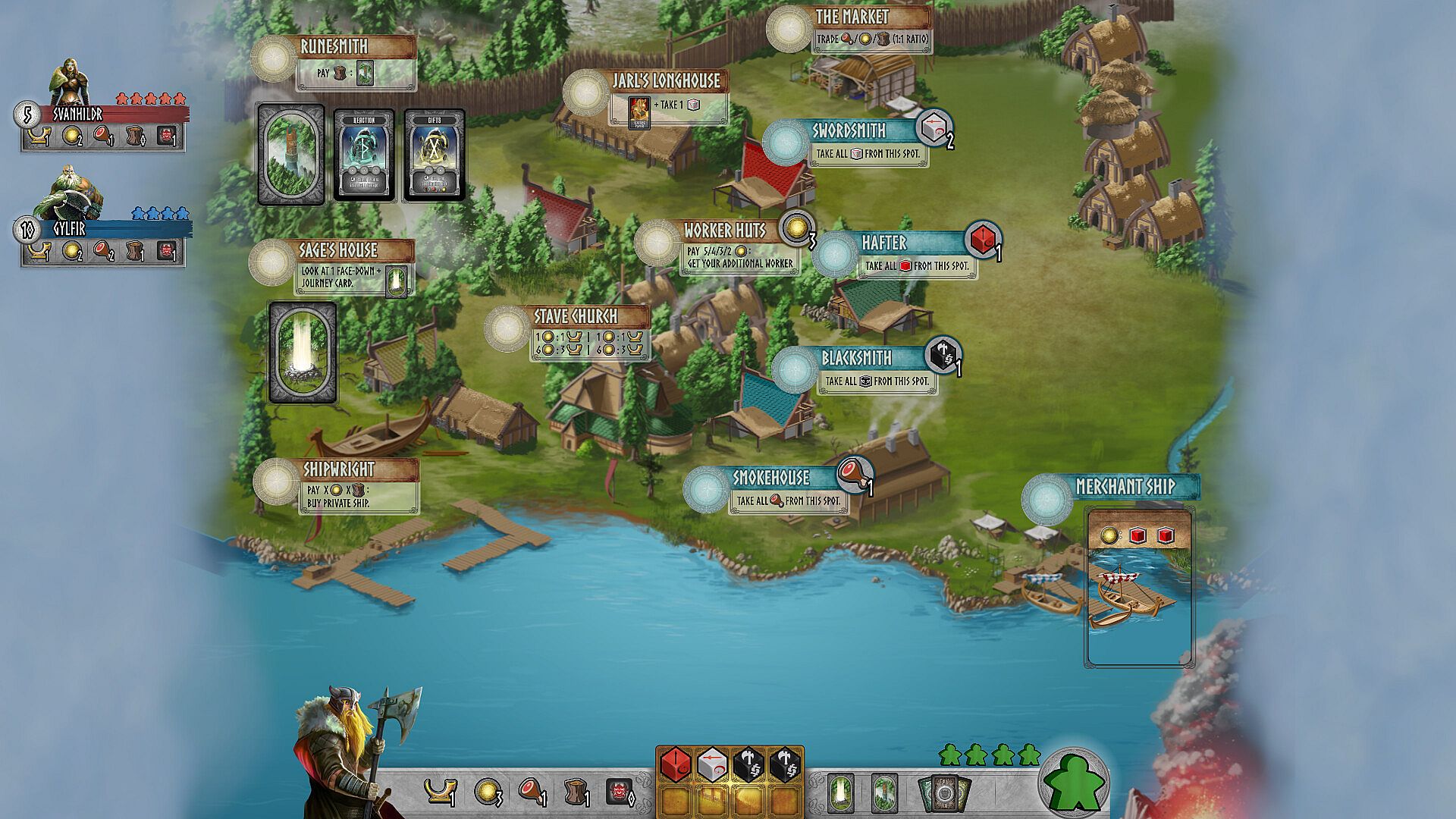 Compete against your rivals as one of Midgard's Viking leaders: Ullr the Berserker, Gylfir the Seaworthy, Dagrun the Destined, Asmundr the Pious, or Svanhildr the Swordmaiden.
