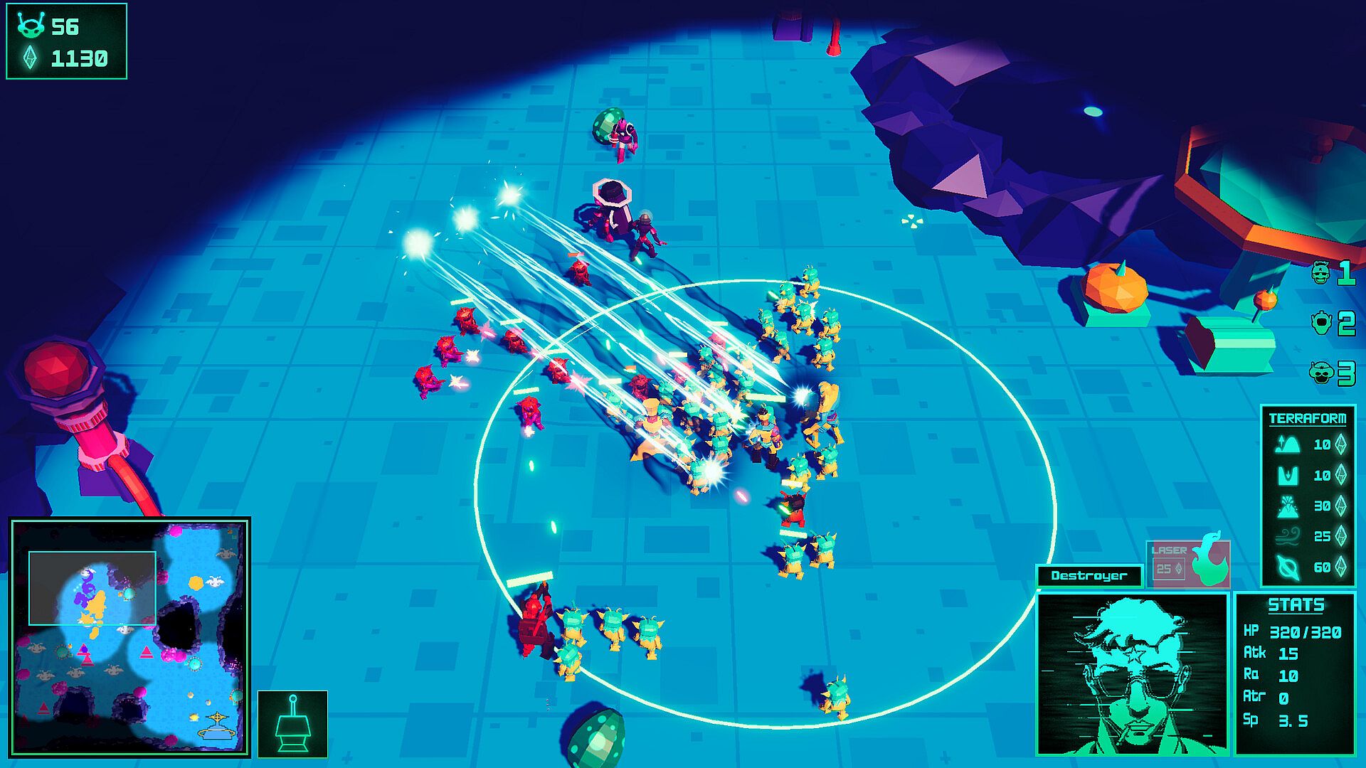 Harness the power of the rare ore Terranium to reshape the battlefield in the heat of combat. Raise hills and mountains to your advantage or tear open the ground and hurl your enemies into the planet’s core. Even greater powers await those who master the Terranium Laboratory, where new abilities can be researched and unleashed.