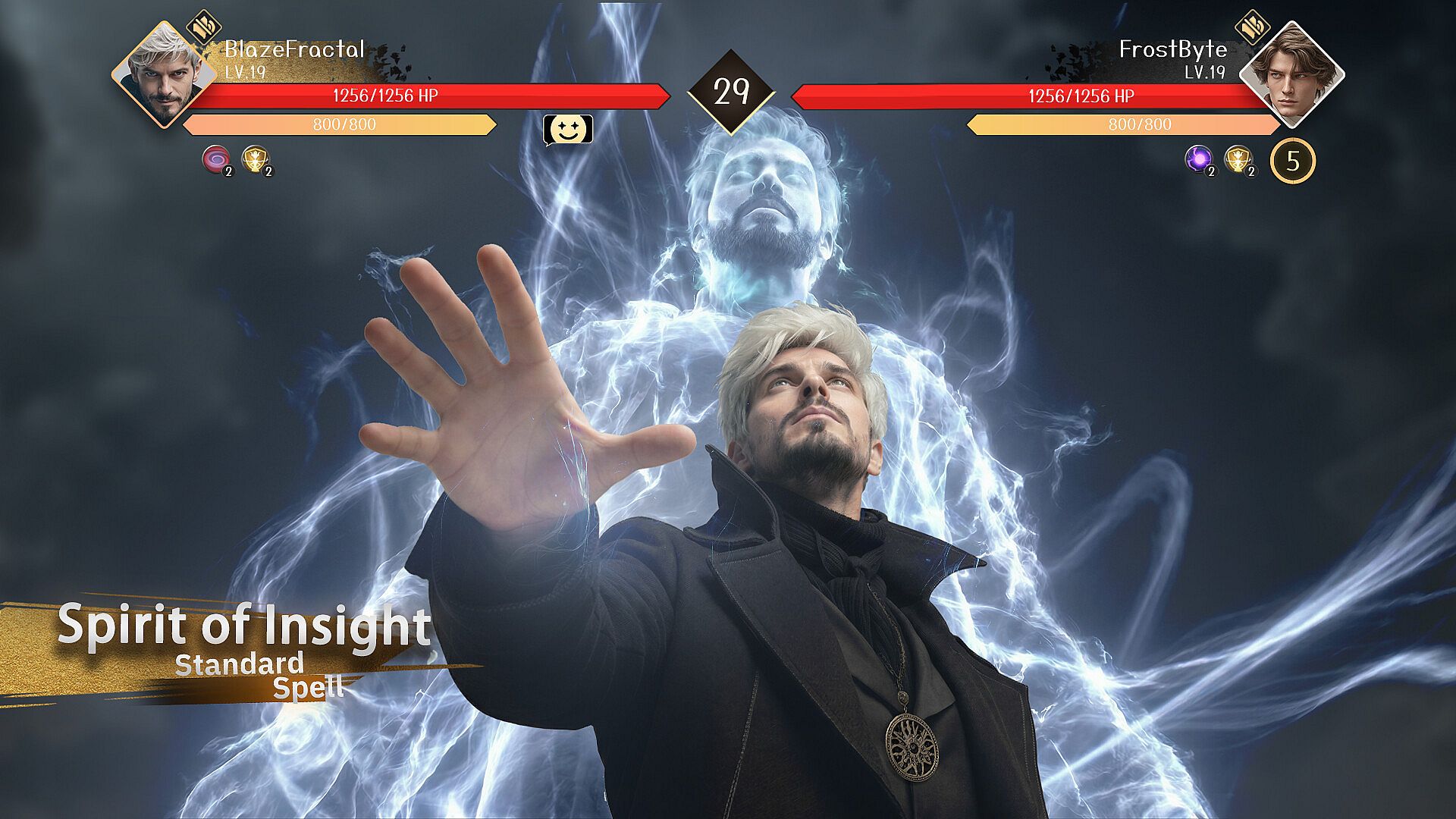 Each match brings a selection of spell cards from your deck. Fire, Water, Dark, Light, and Spirit—five schools of magic that offer rich strategies and dramatic turnarounds.