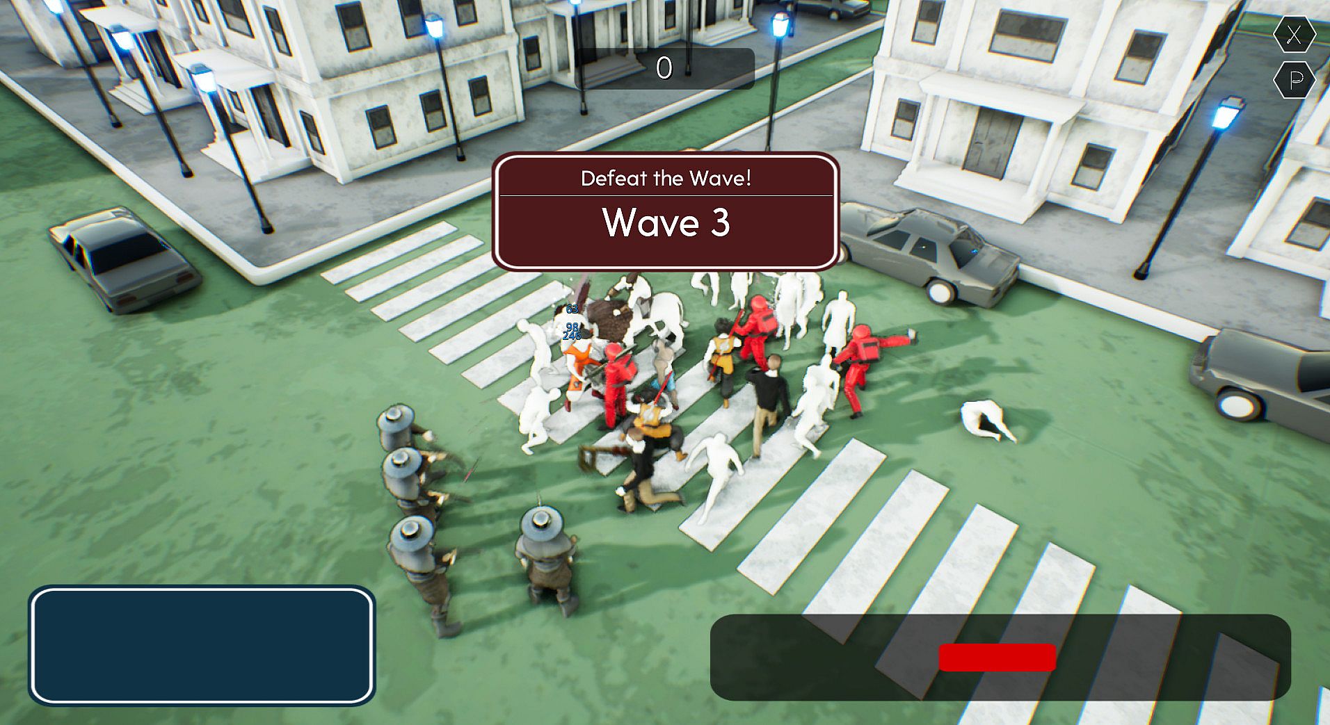 • Select your team as you like, then watch the fight from above and control each character in real-time and let the action unfold.