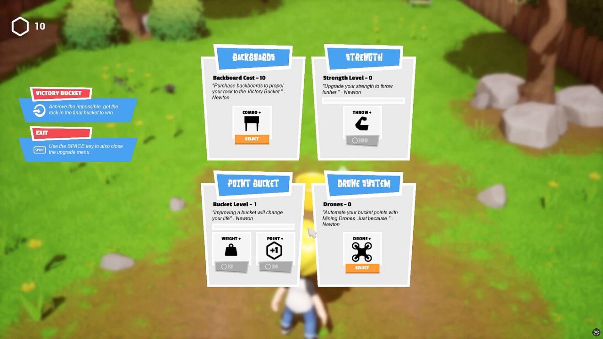 Mine rocks automatically to earn points over time while you work towards the Victory Bucket.