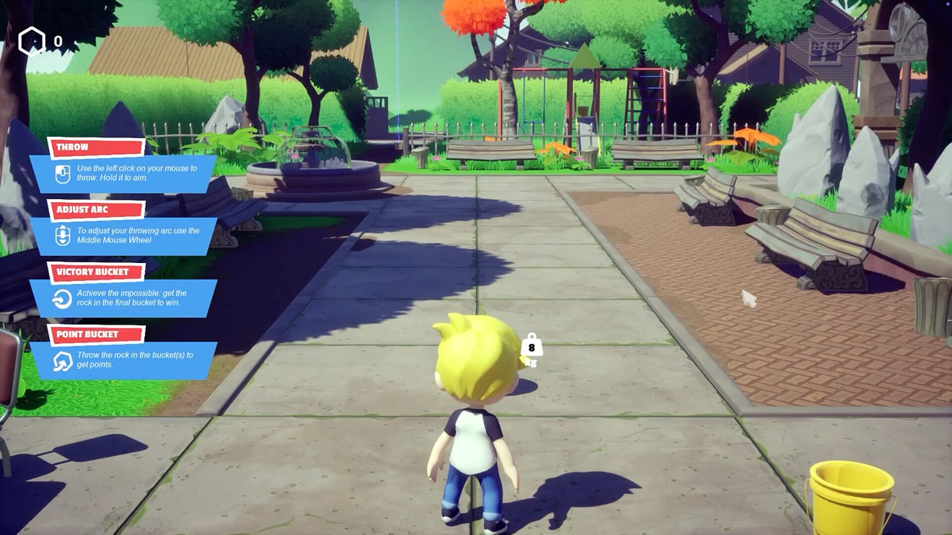Physics-based rock throwing with stylized, cel-shaded visuals