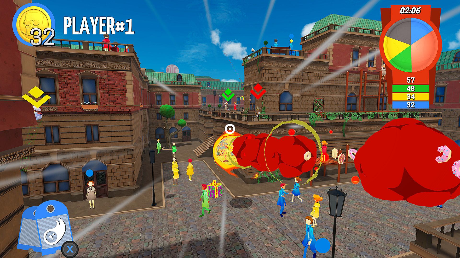 Bounce, float and zoom through the air and land on people’s heads to score points. Use jetpacks, dogs, shields...anything you can do to get a-Head of the competition and master the playstyle of each headpiece!