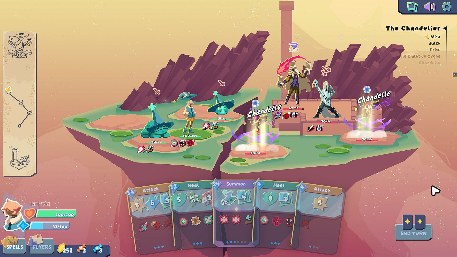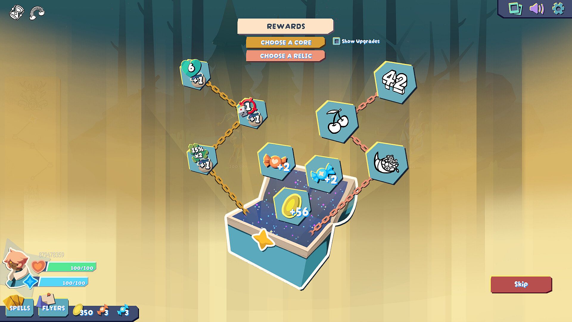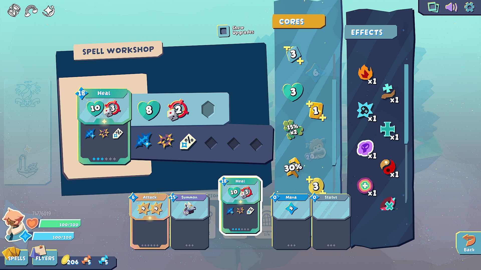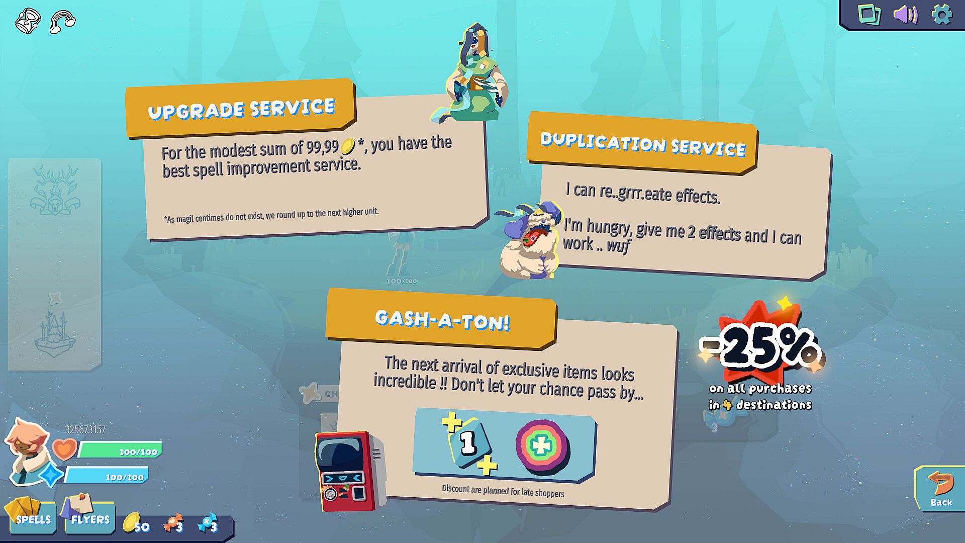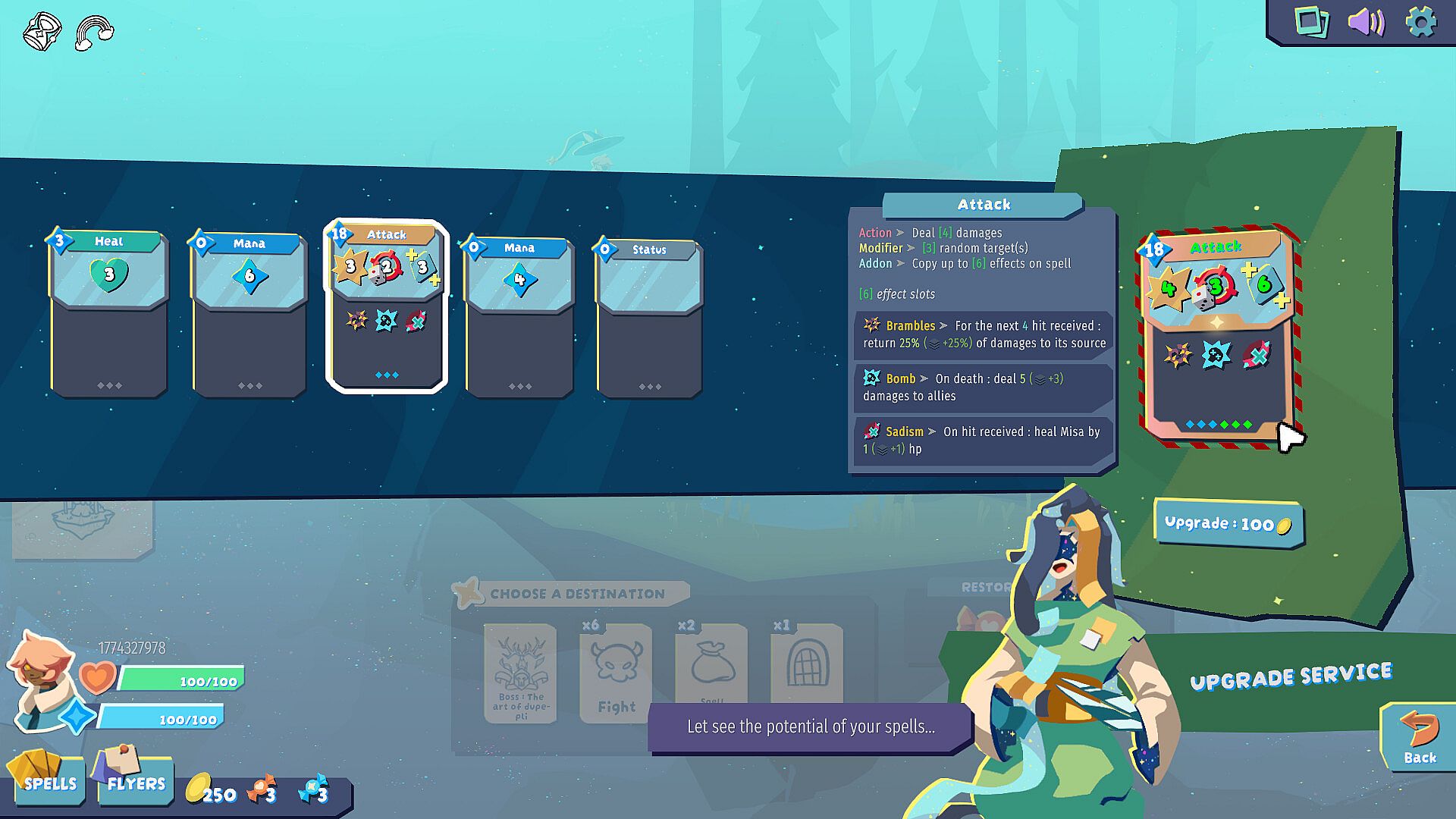 Each destination is a resource in itself, so optimize your path to use them wisely. Will you risk starting by the dungeon to get new cores or use one of the few shops to upgrade your spells first ?