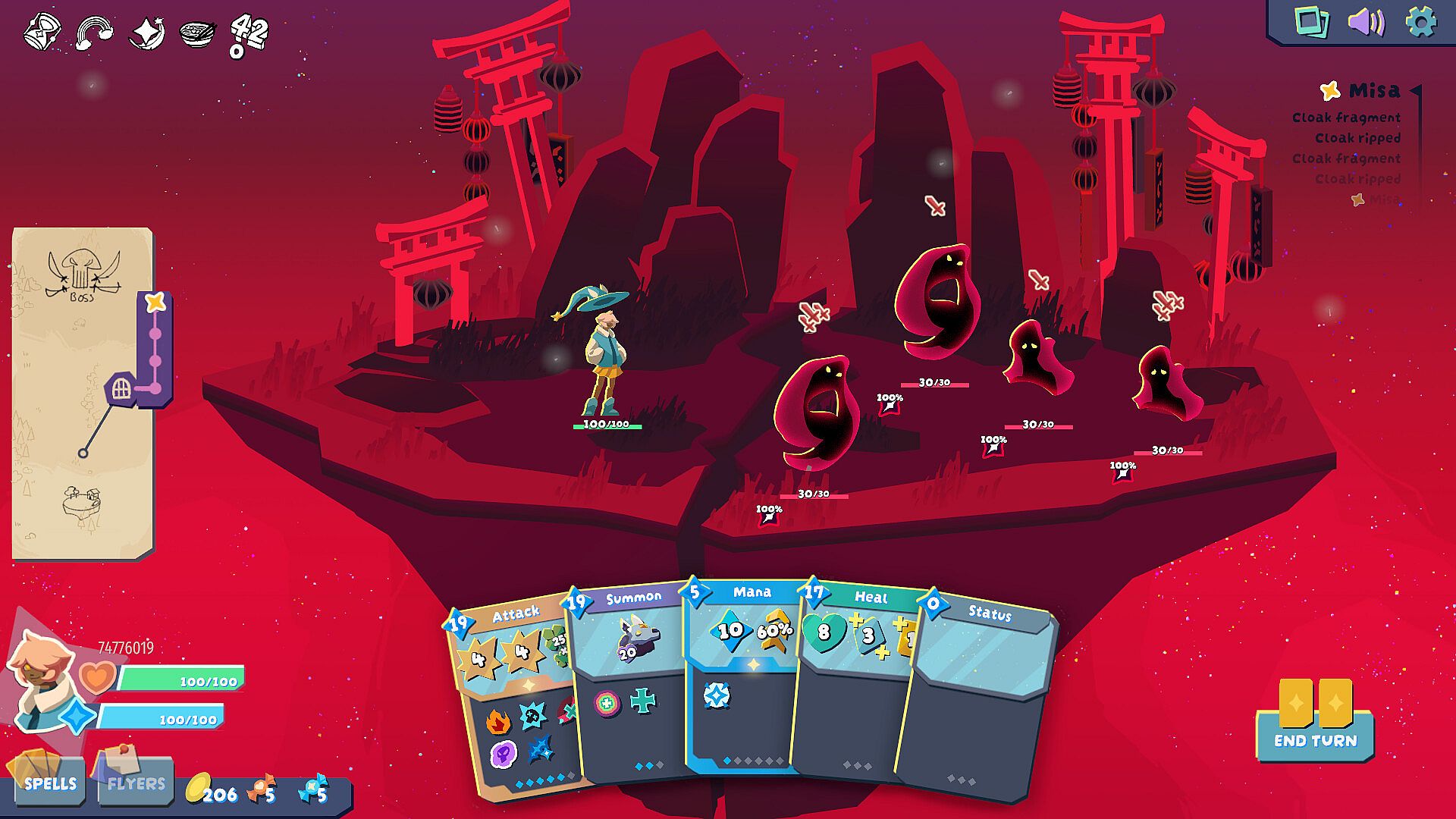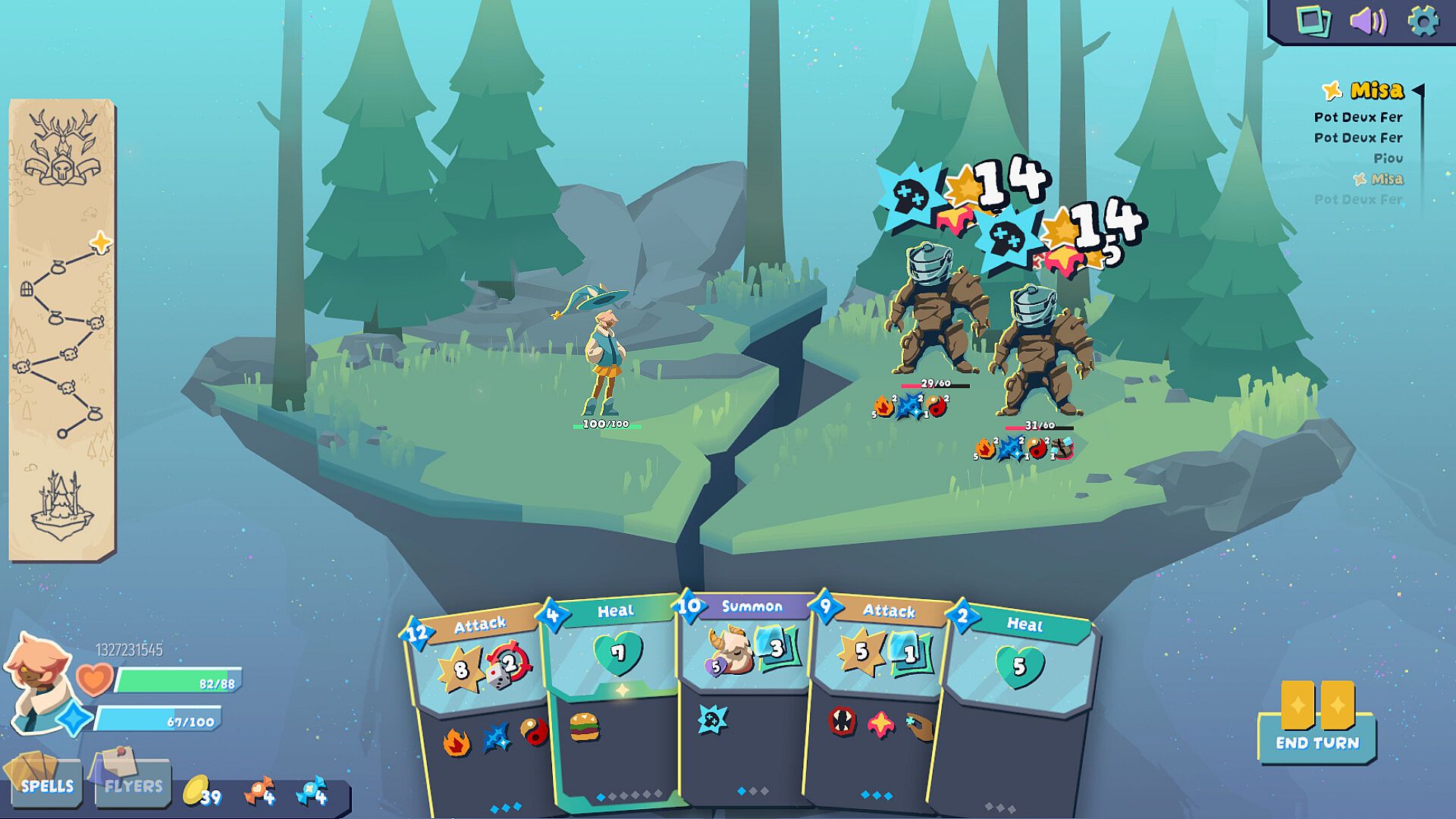 Misa is a sorceress finding her way in a colorful fantasy world sprinkled with french expressions. To fight your way through, you will build spells by combining multiples effects and items to increase their power. Make a good use of all your resources to end up victorious !
