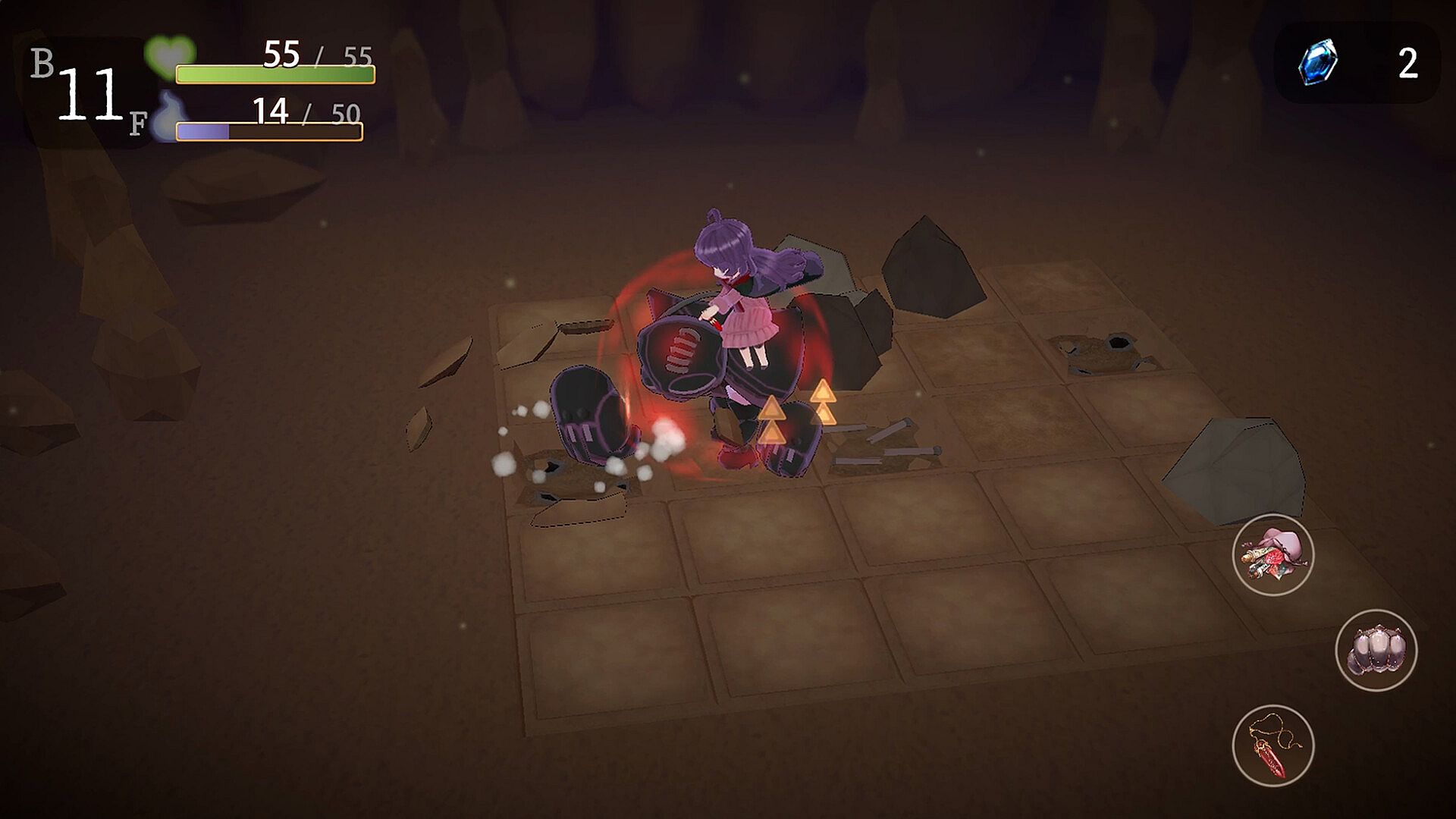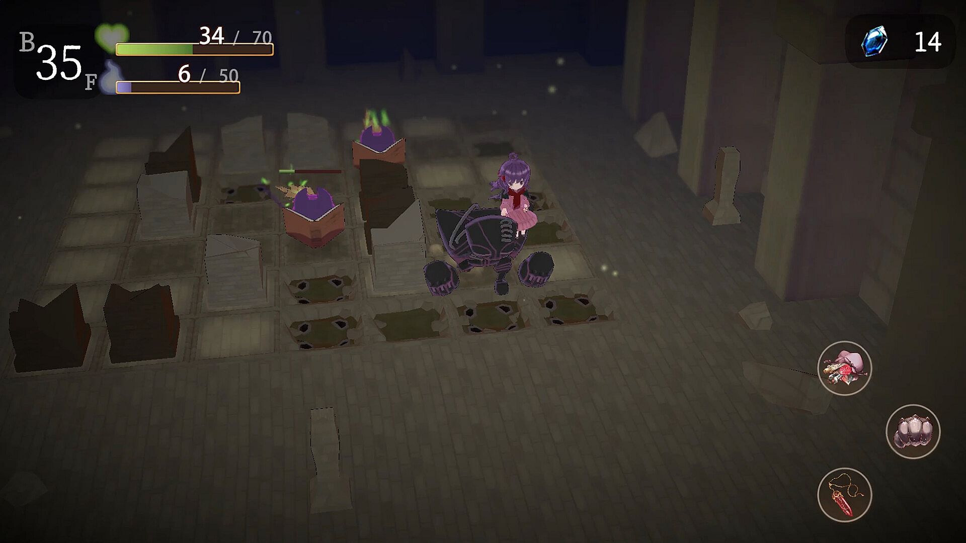 This is an action RPG in which Charois, a small witch, goes underground with her golem.