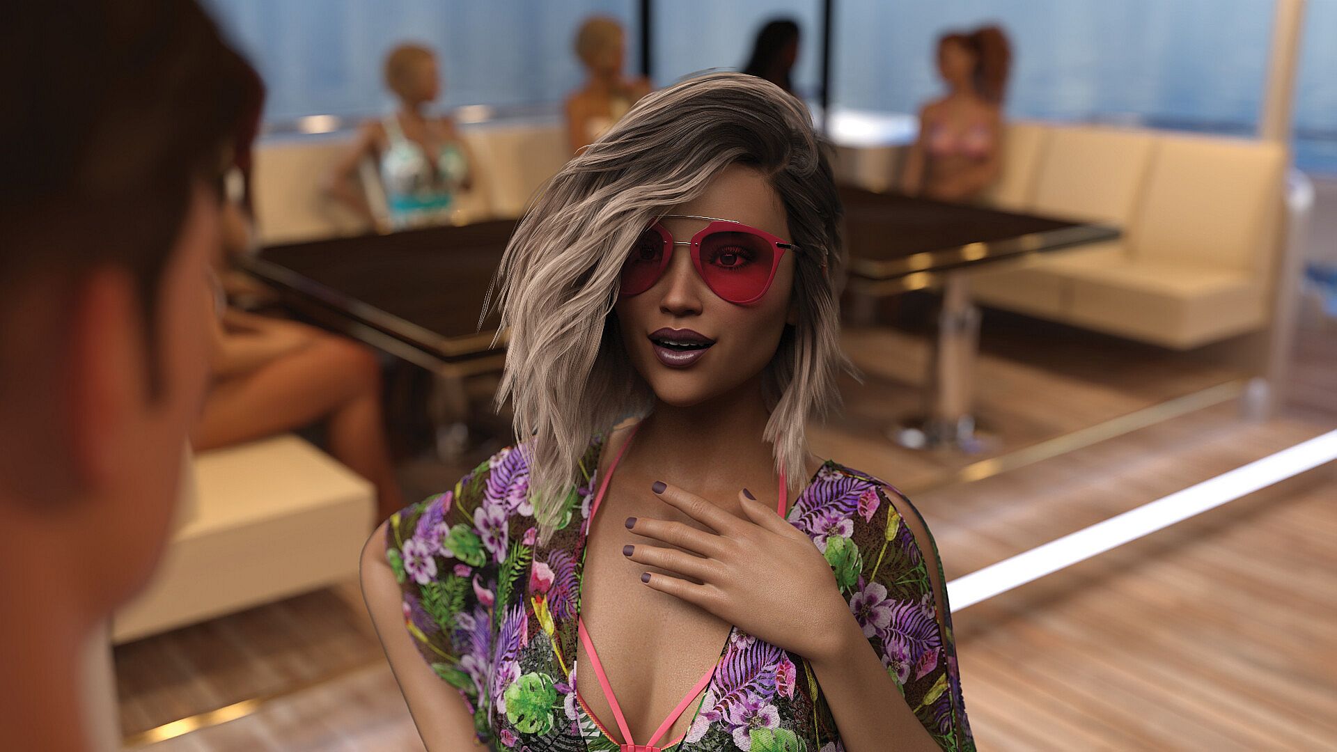 You play from a third person perspective as a young man whom inherited the family’s wealth, you chose to use some of that money to start a cruise business that mostly caters to engagement parties or bridal parties. However, on this trip you're hosting the event for a bachelorette party. You can choose to interact with the guests while they're aboard your yacht. Or you can simply be the curious host and keep the interaction purely professional. As soon as the guests arrive you'll embark on out to sea and head for paradise island. With both night and day interactions you can choose where to go and whom to talk to: spontaneous connections, and unforgettable nights. It’s a place where grown-ups let go, unwind, and write their own stories—luxurious, intimate, and just a little bit wild.