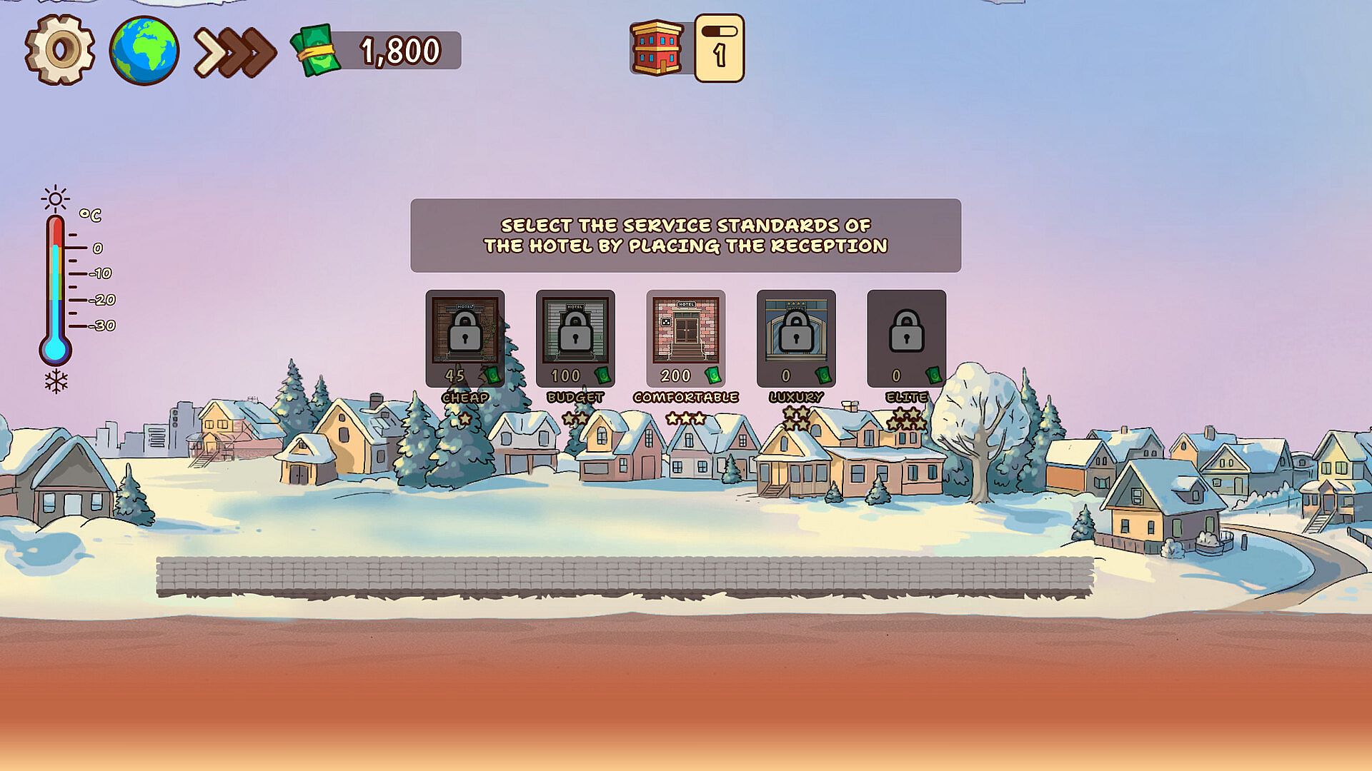 You are about to start developing your hotel business from scratch, from the cheapest hotel in the wilderness. Expand the hotel chain to new cities, buy territories for construction and improve global parameters.