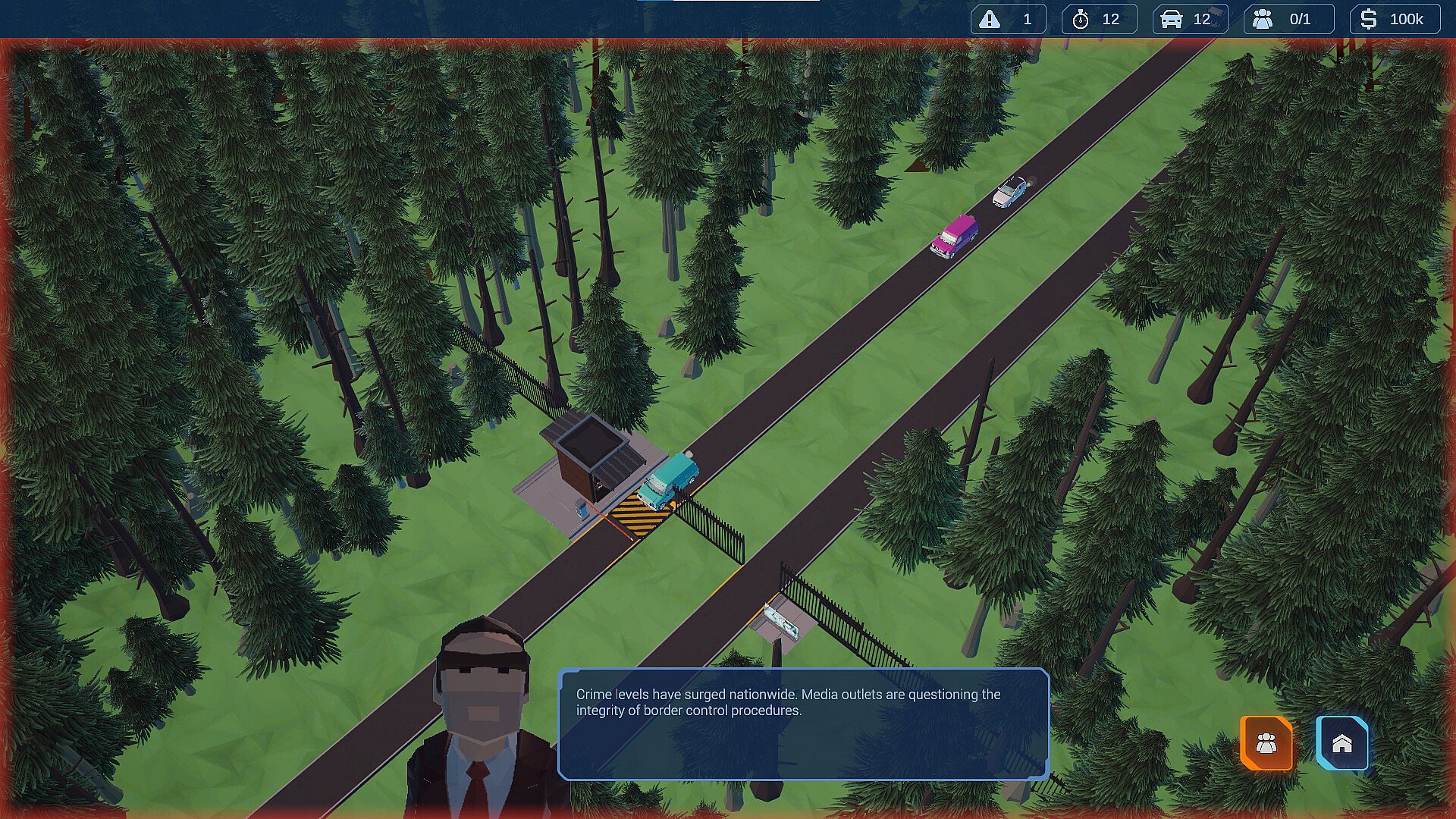 Design and manage a high-pressure checkpoint facility where vehicles, cargo, and civilians must be processed efficiently, but never carelessly. Expand infrastructure, assign officers, optimize traffic lanes, and build inspection systems that balance flow with enforcement.