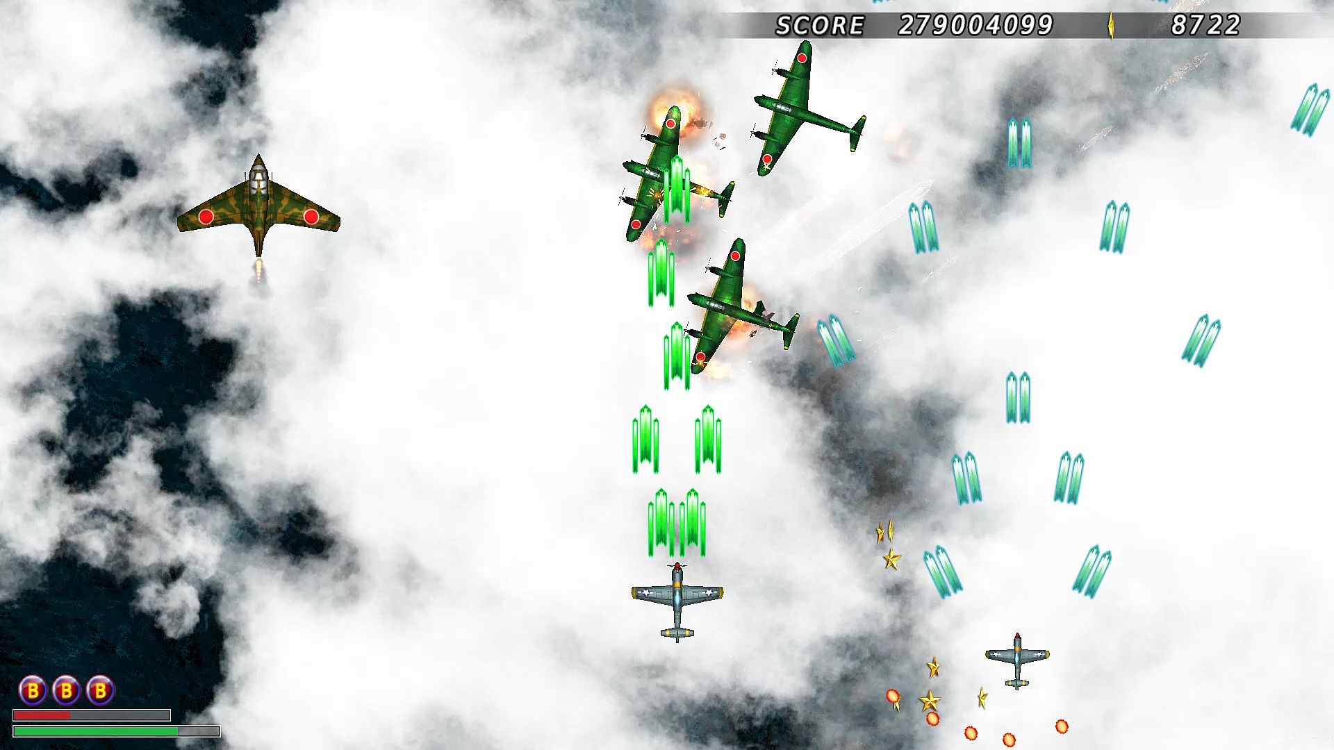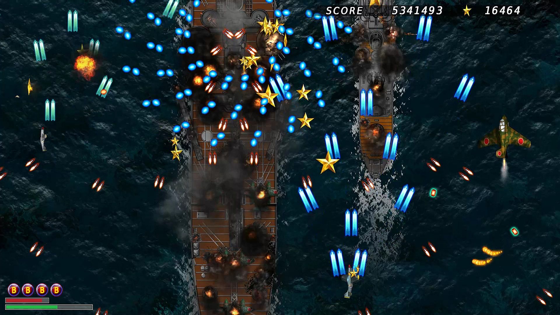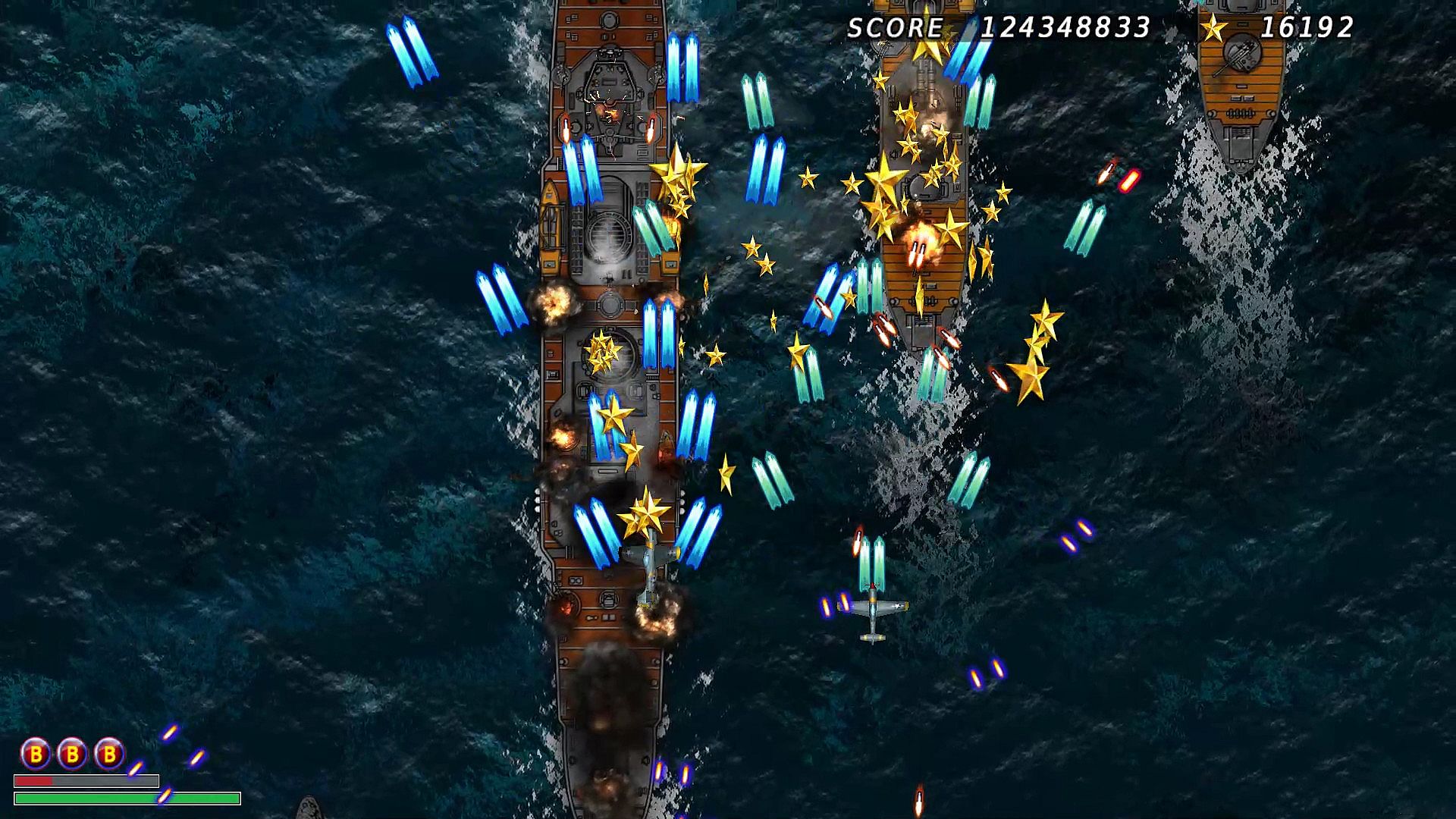 Your ship is usually with a shot In addition, it has an emergency bomb and a support aircraft attack,