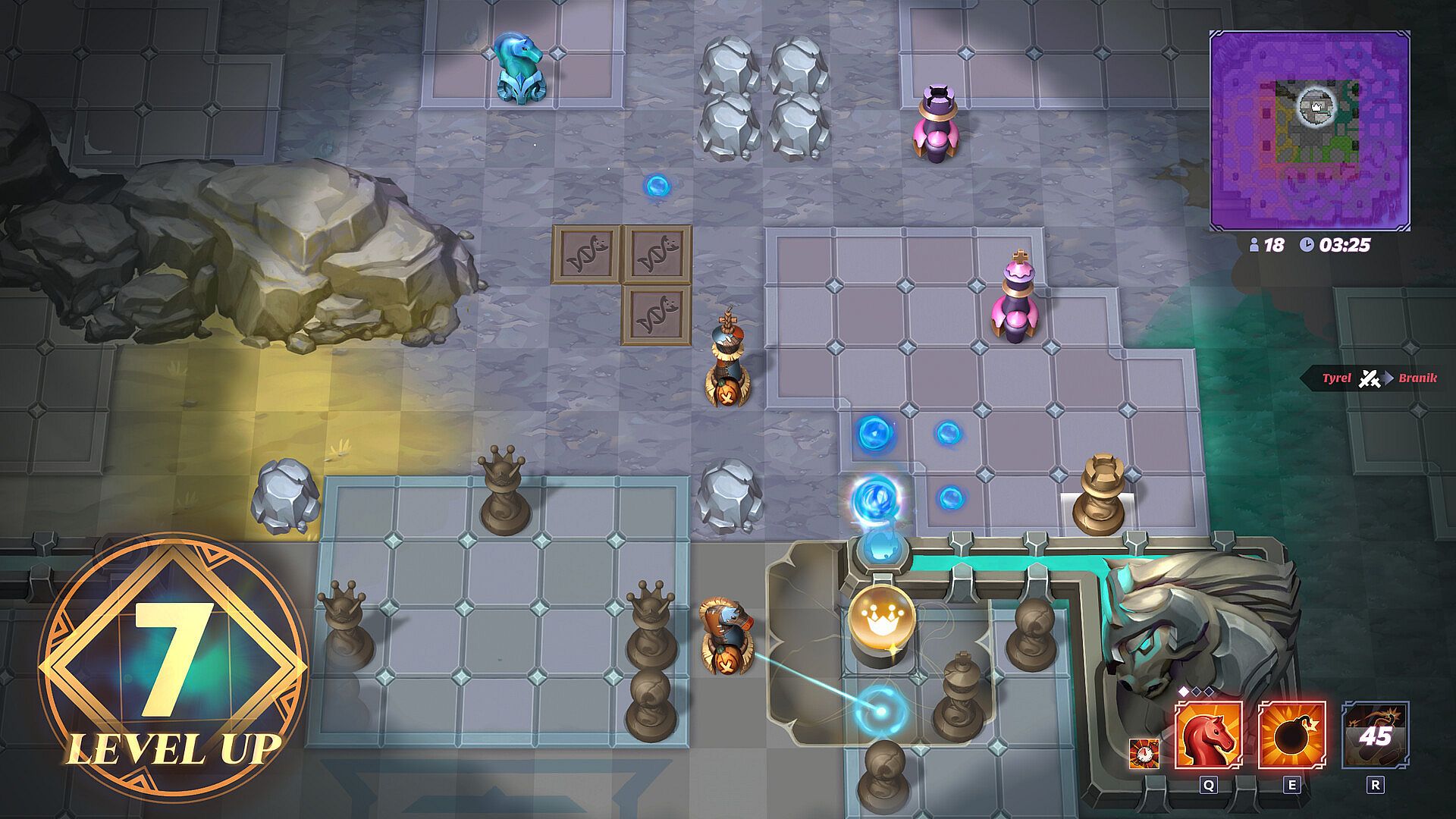 Play as a chess champion with game-changing abilities, wreaking destruction, chaos, deception, or control on the battlefield. Ability depth multiplies with chess tactics to create an unreachable skill ceiling