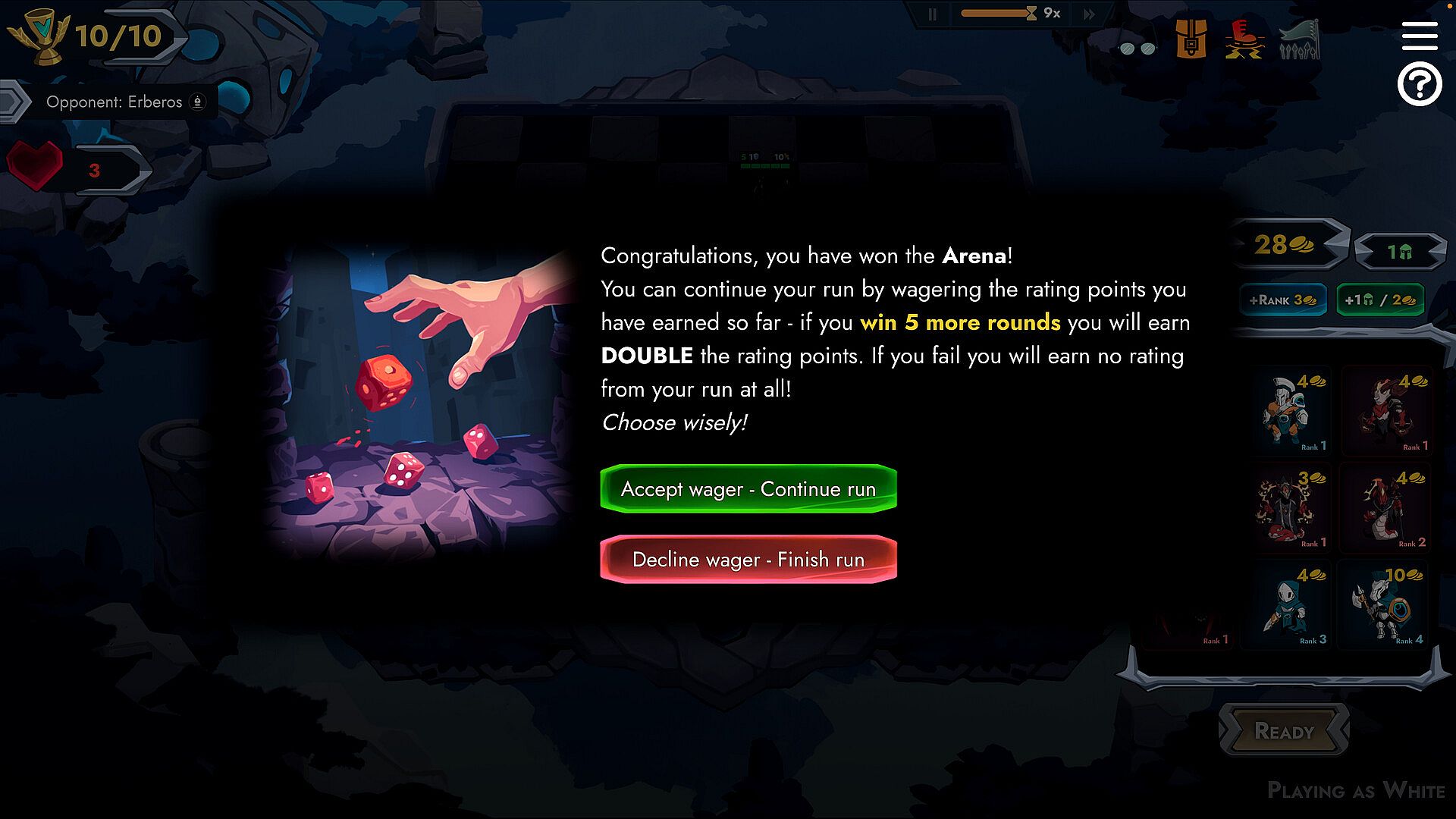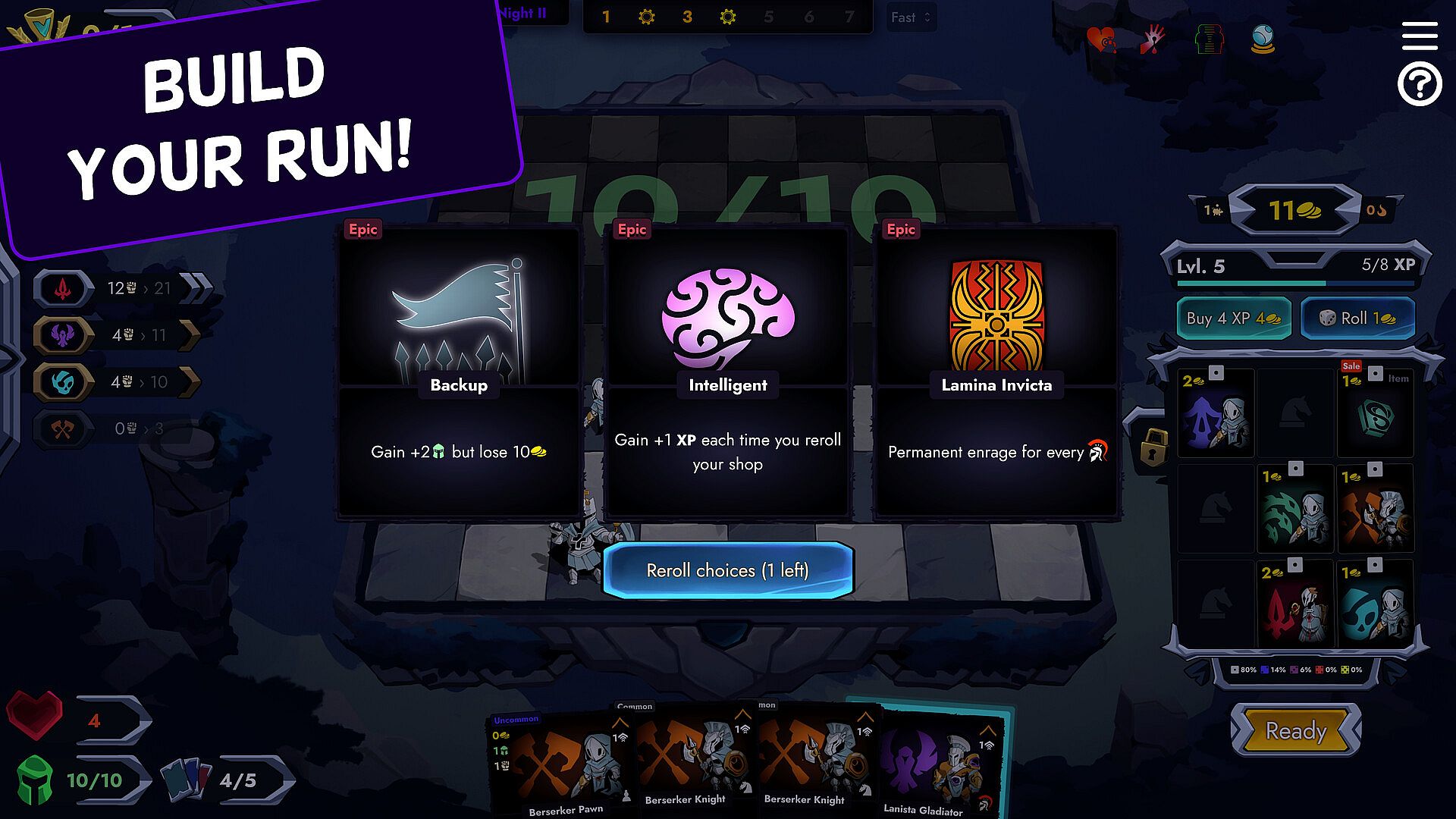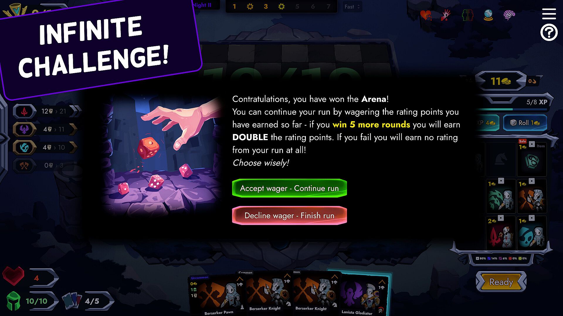 Each encounter you're weighing how many resources to deploy to the battle. Be careful, resources are limited! Winning a run requires careful consideration of how much to commit to each battle. Too much and you're over playing your hand, too few and you risk defeat!