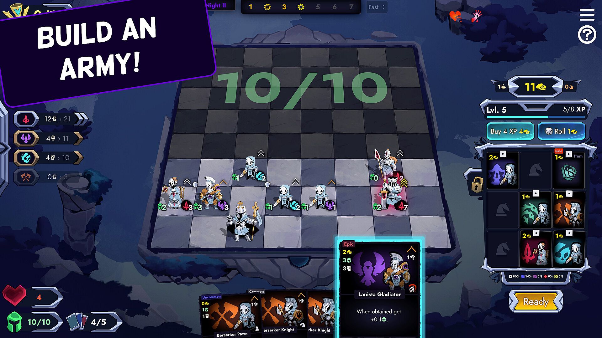 Chessire is a deckbuilder. Your deck is your army.